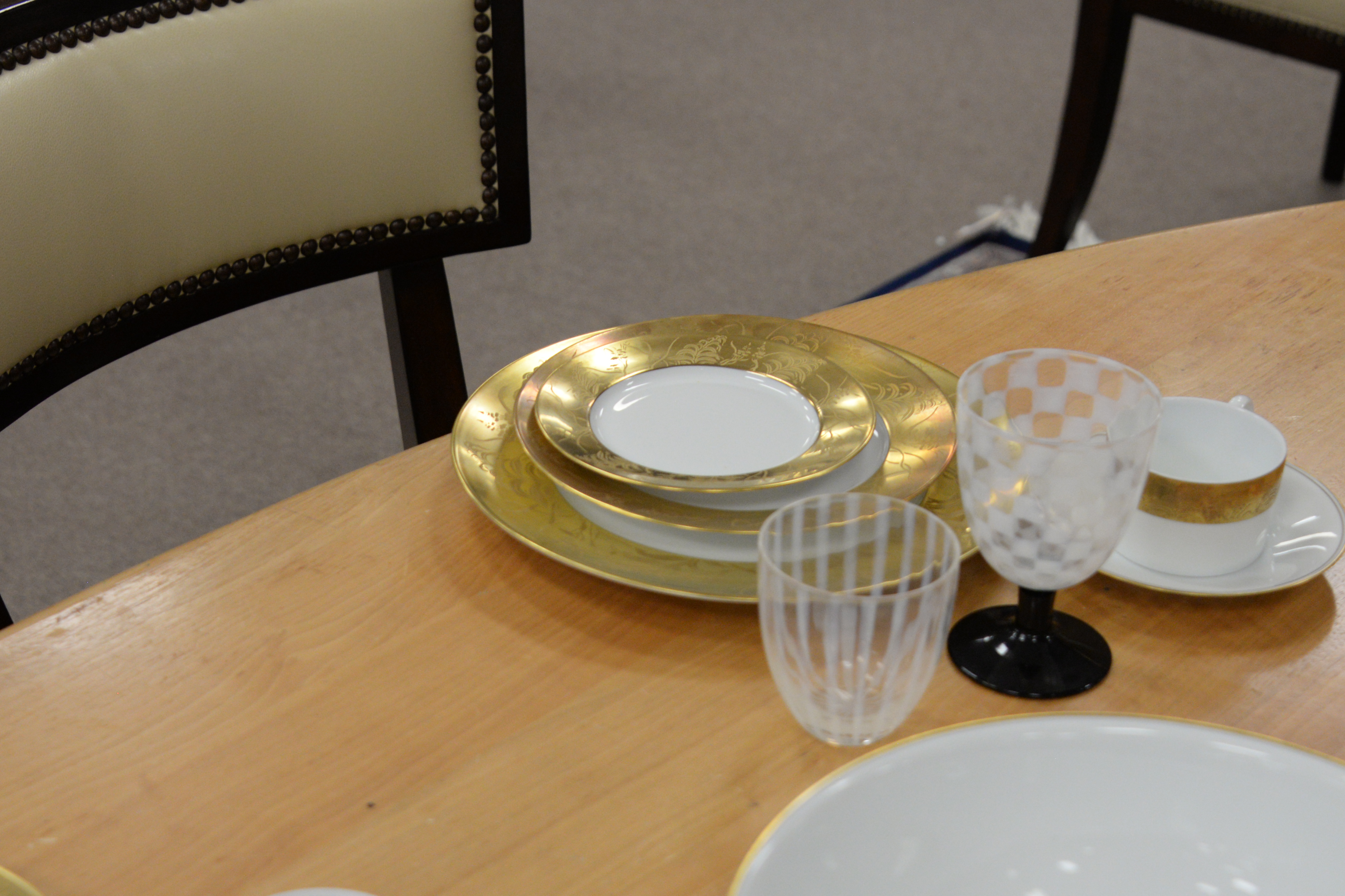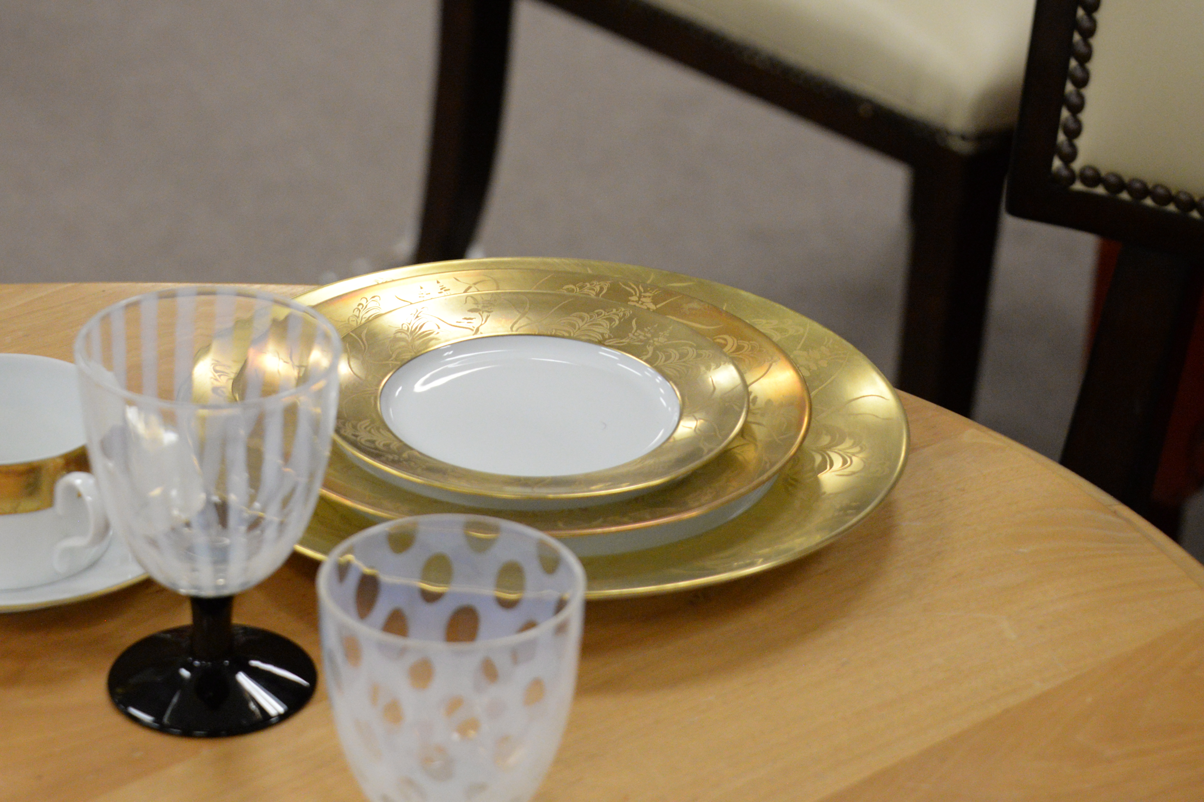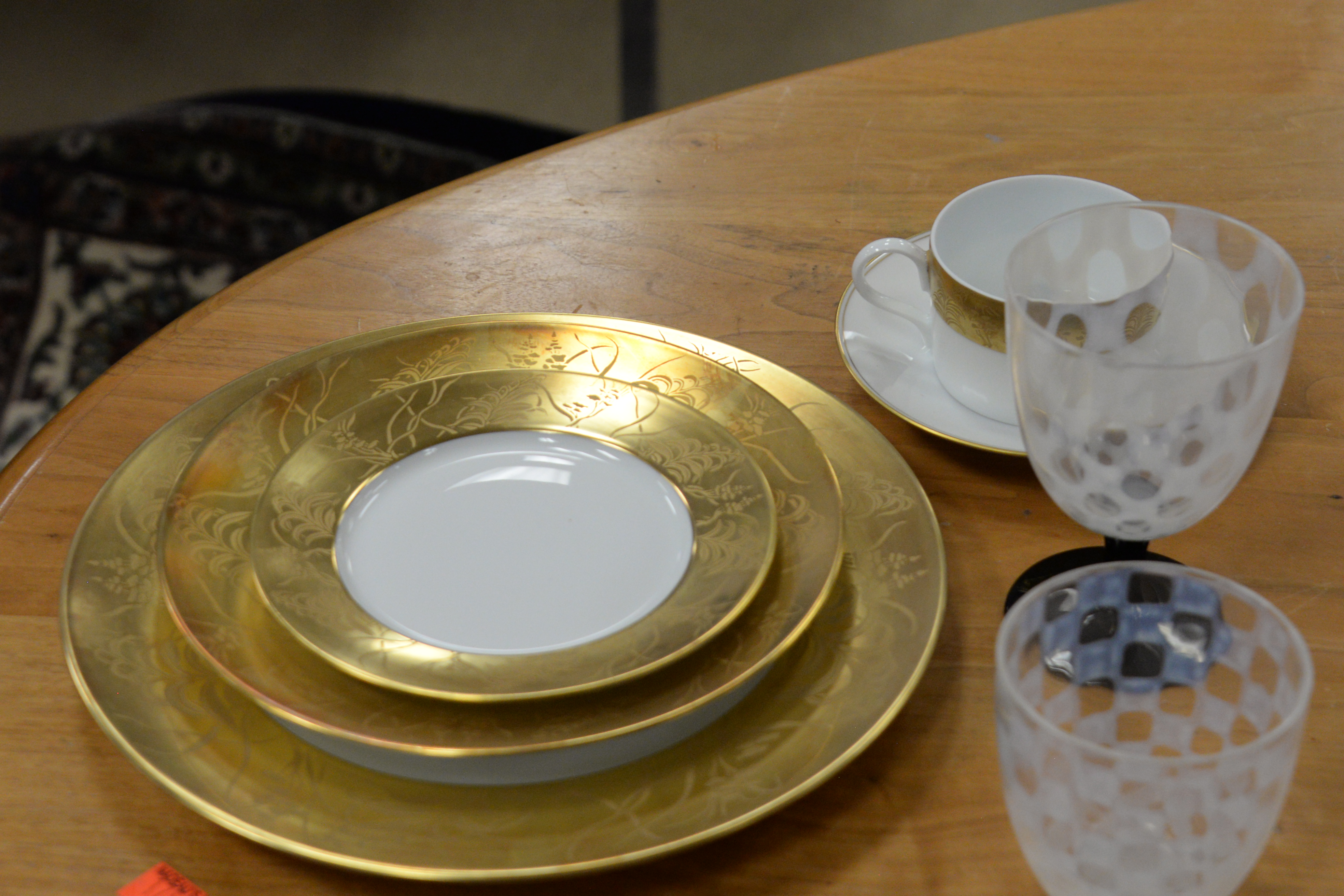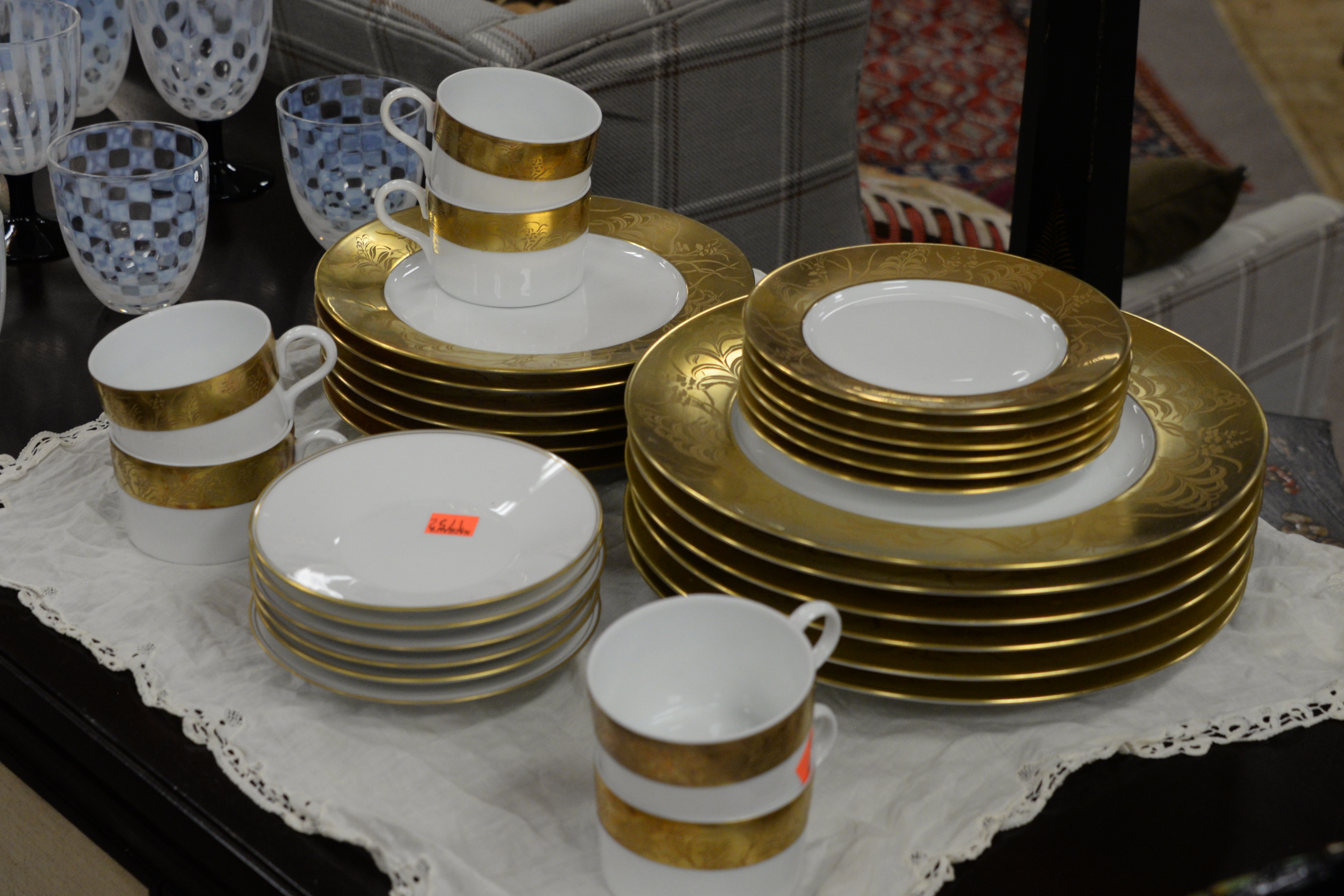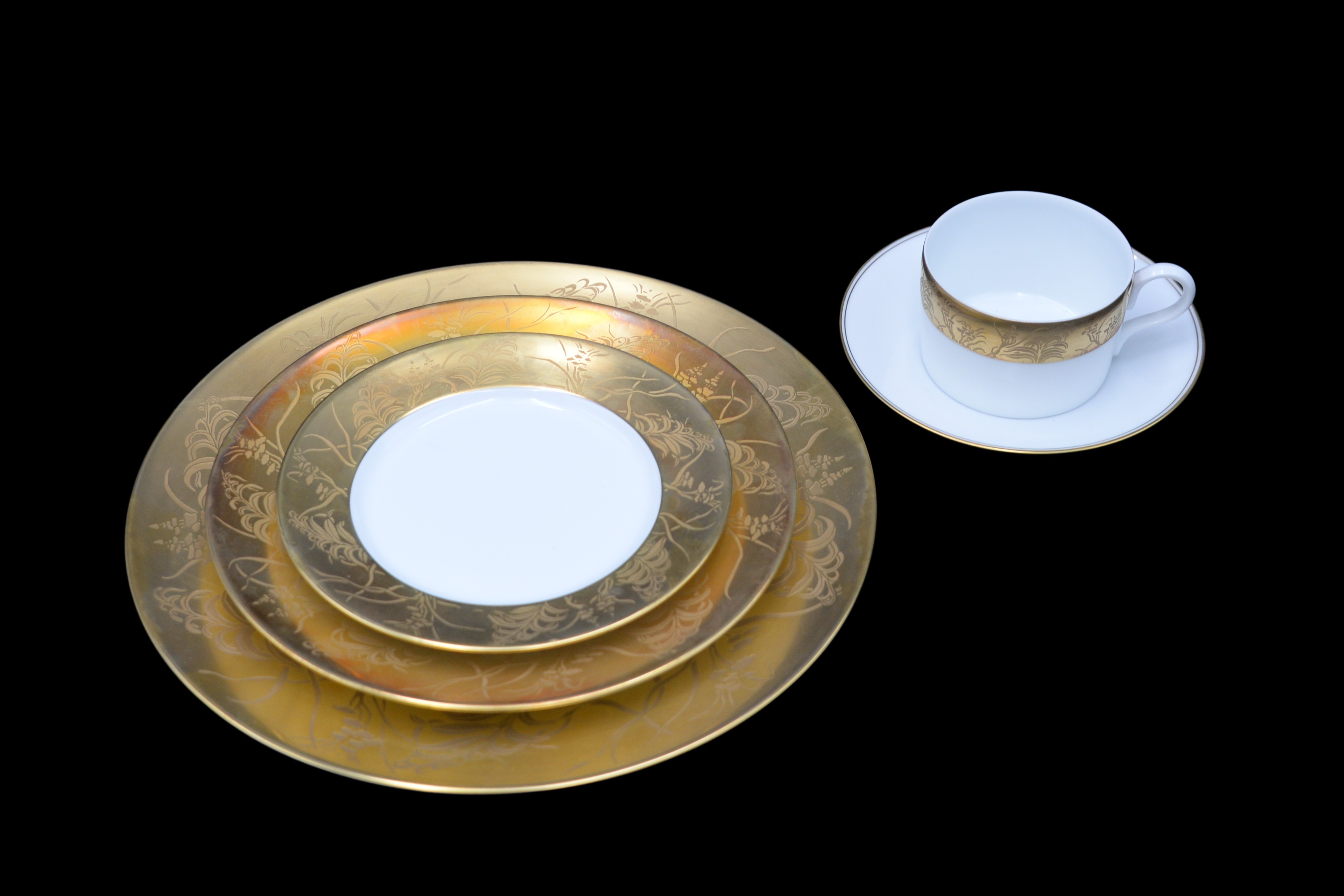 Lot 229: 62 Piece Limoges France Jean Louis Coquet “Khazard Gold” Service for 12