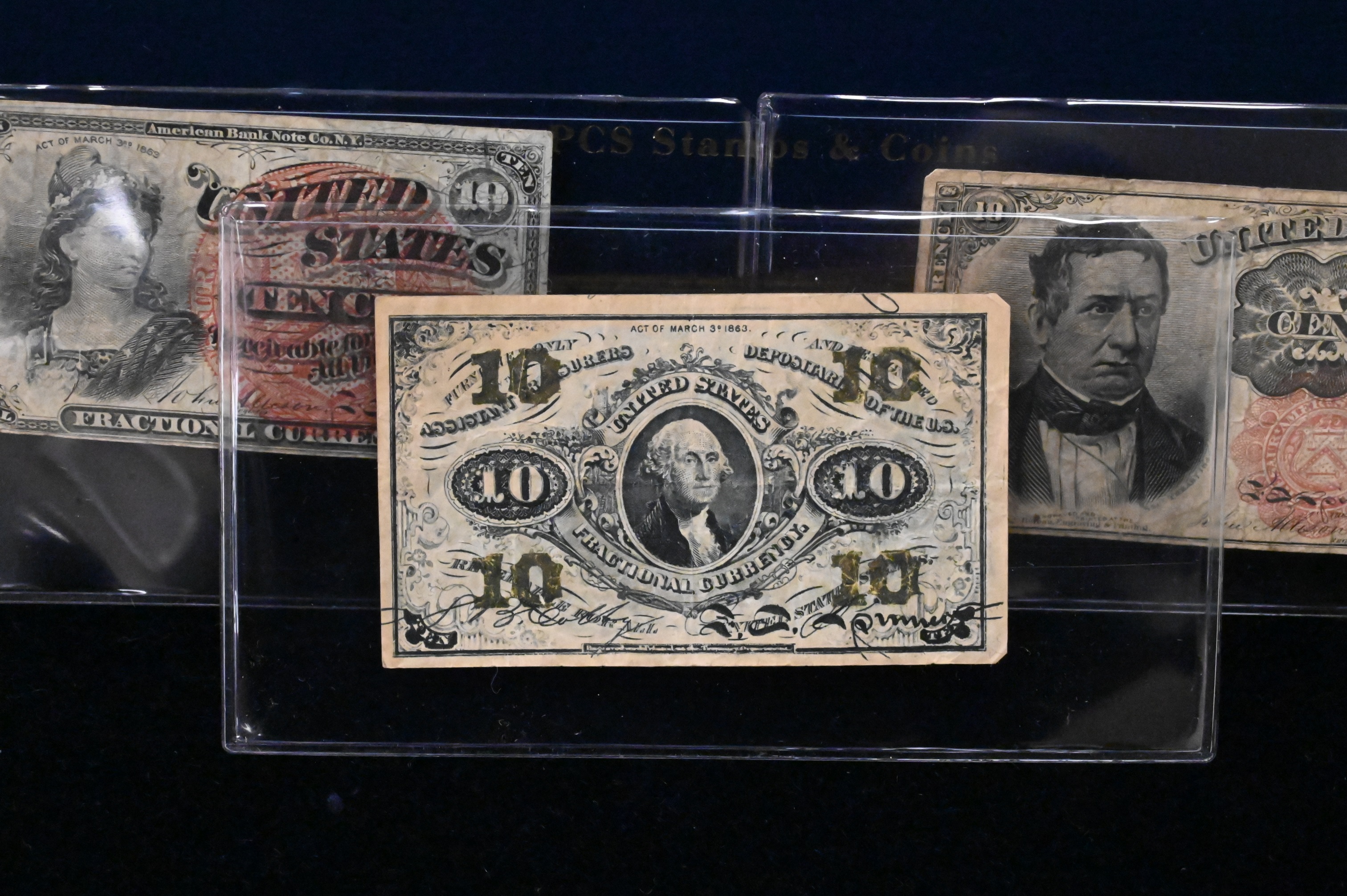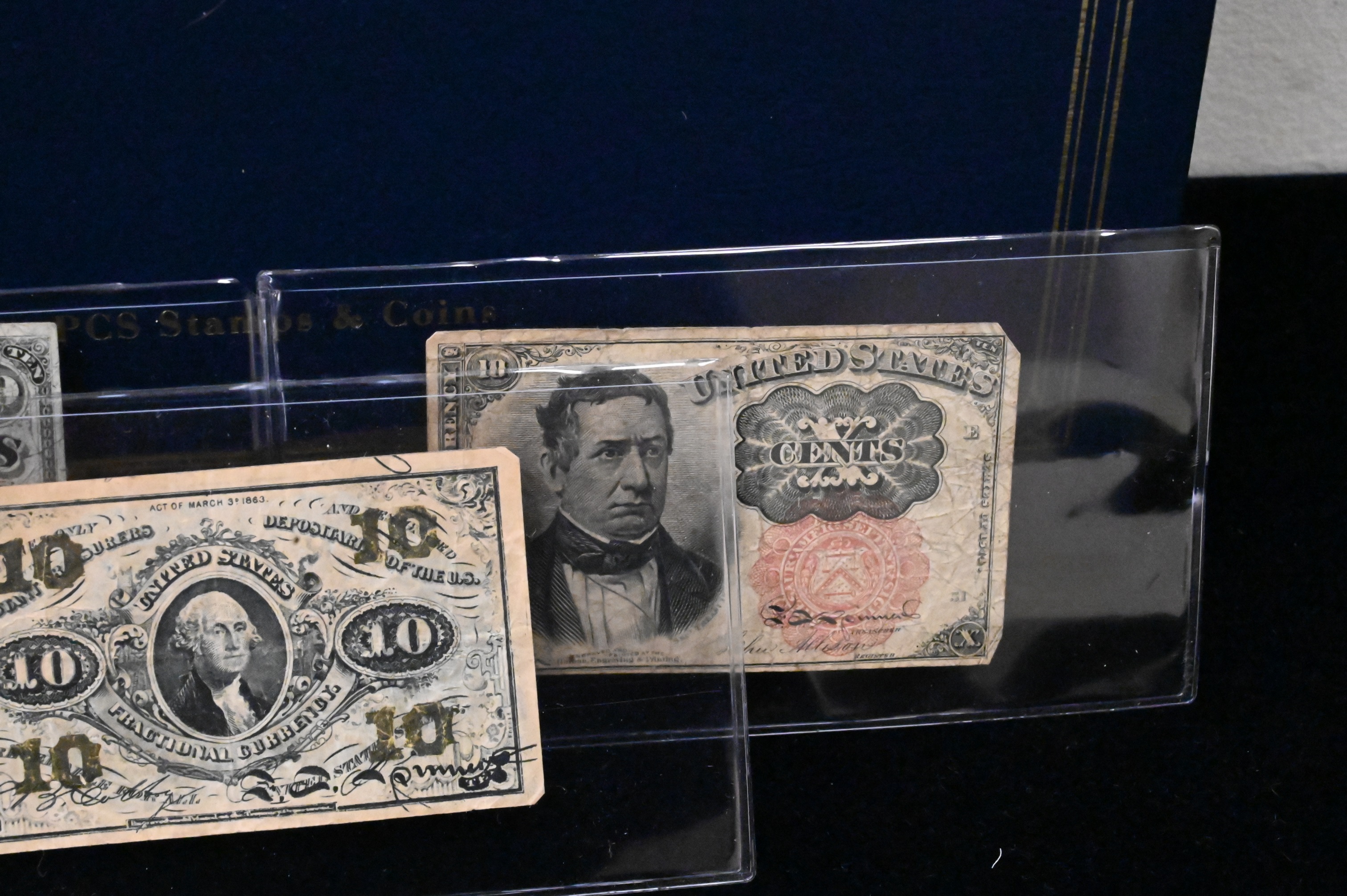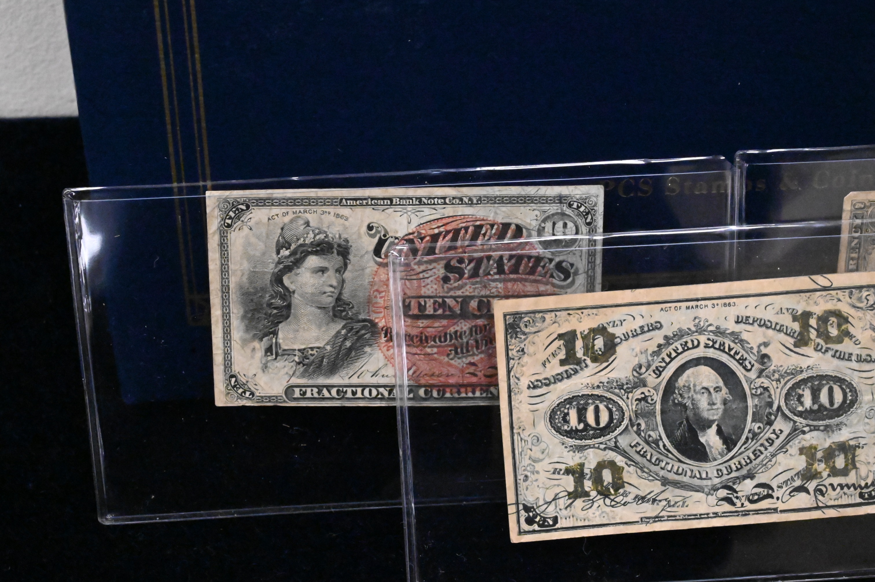 Album with Fractional Currency, four .10¢, five .25¢, one .15¢, one .05¢, and two .50¢