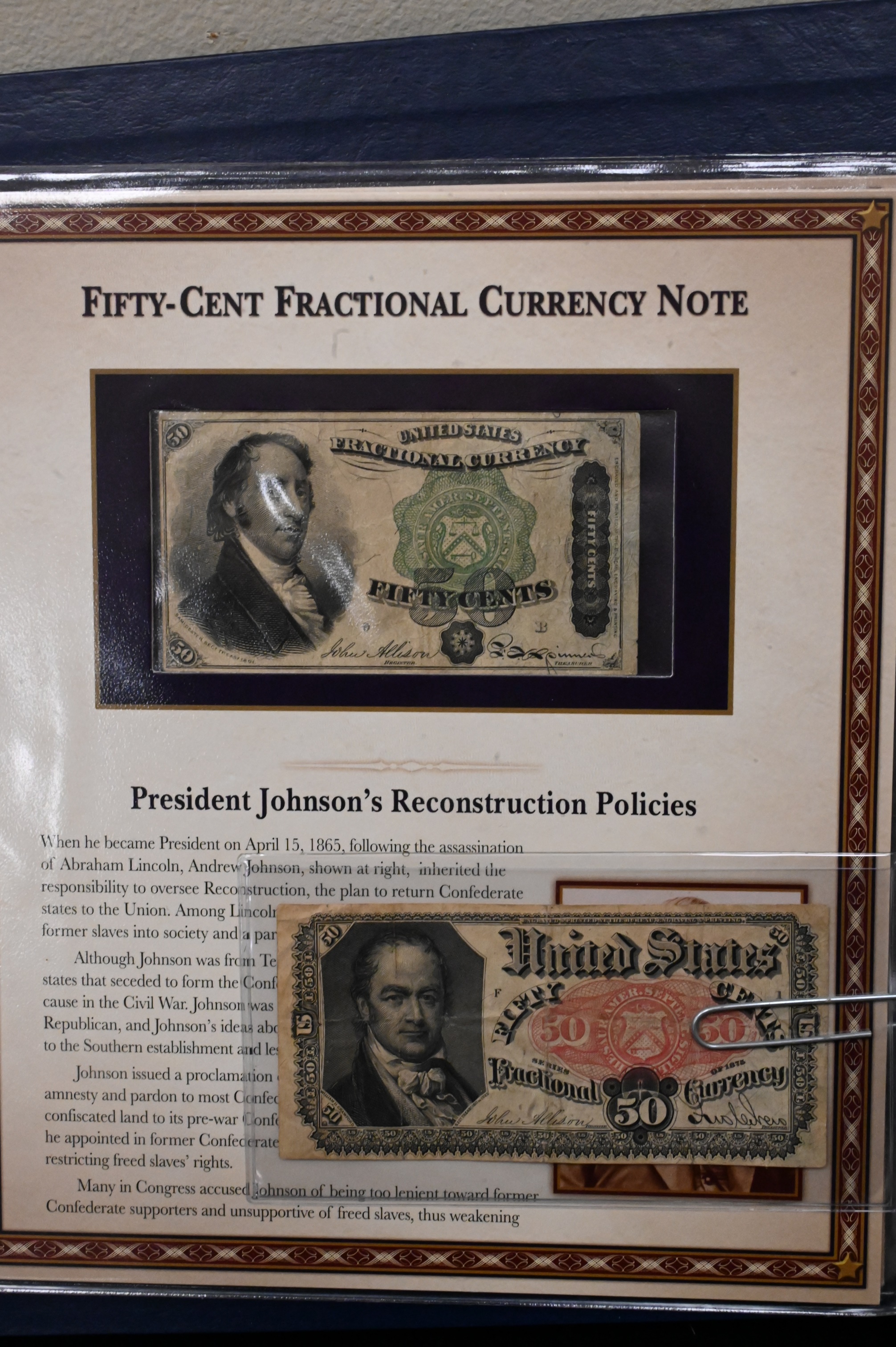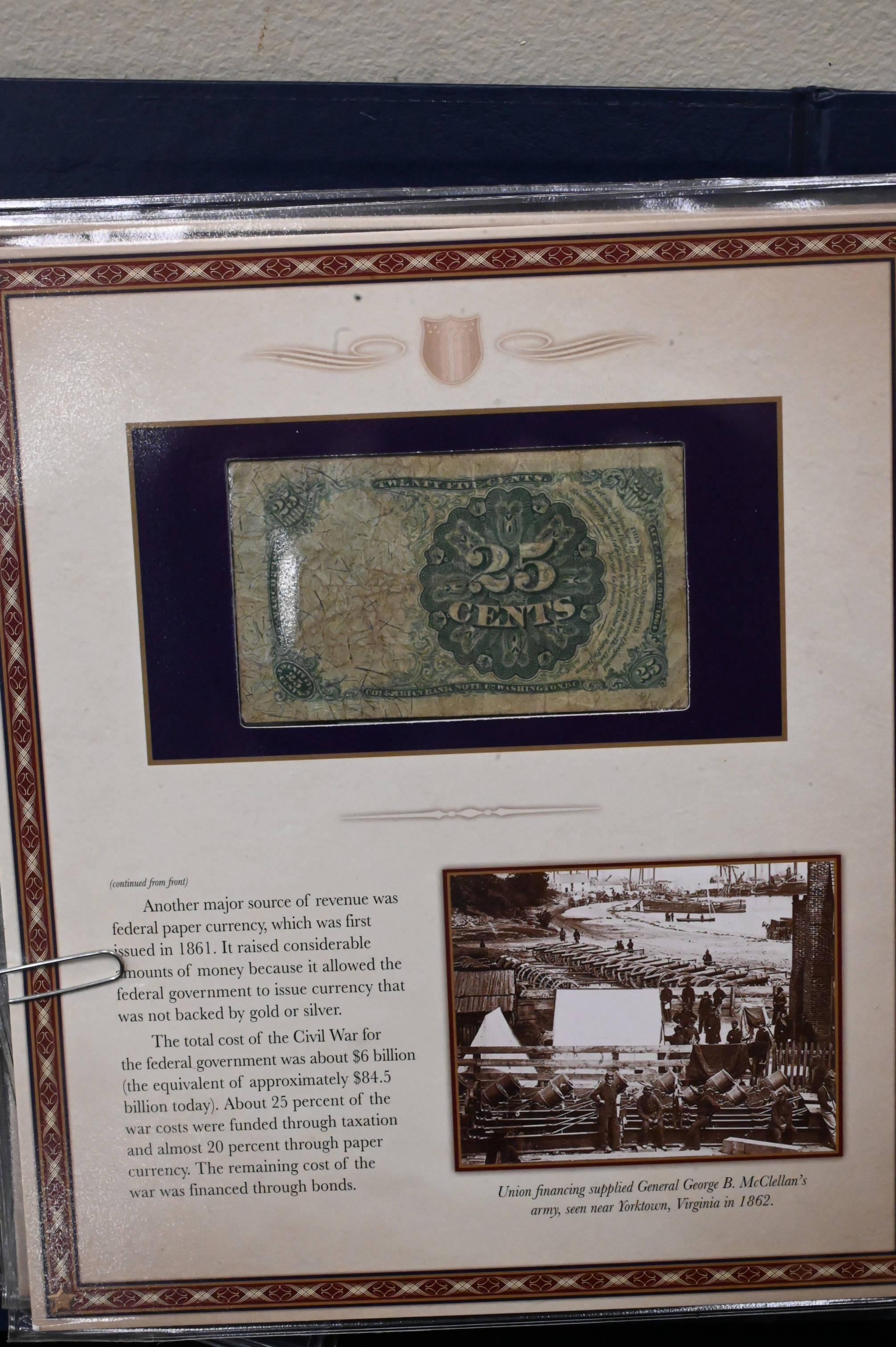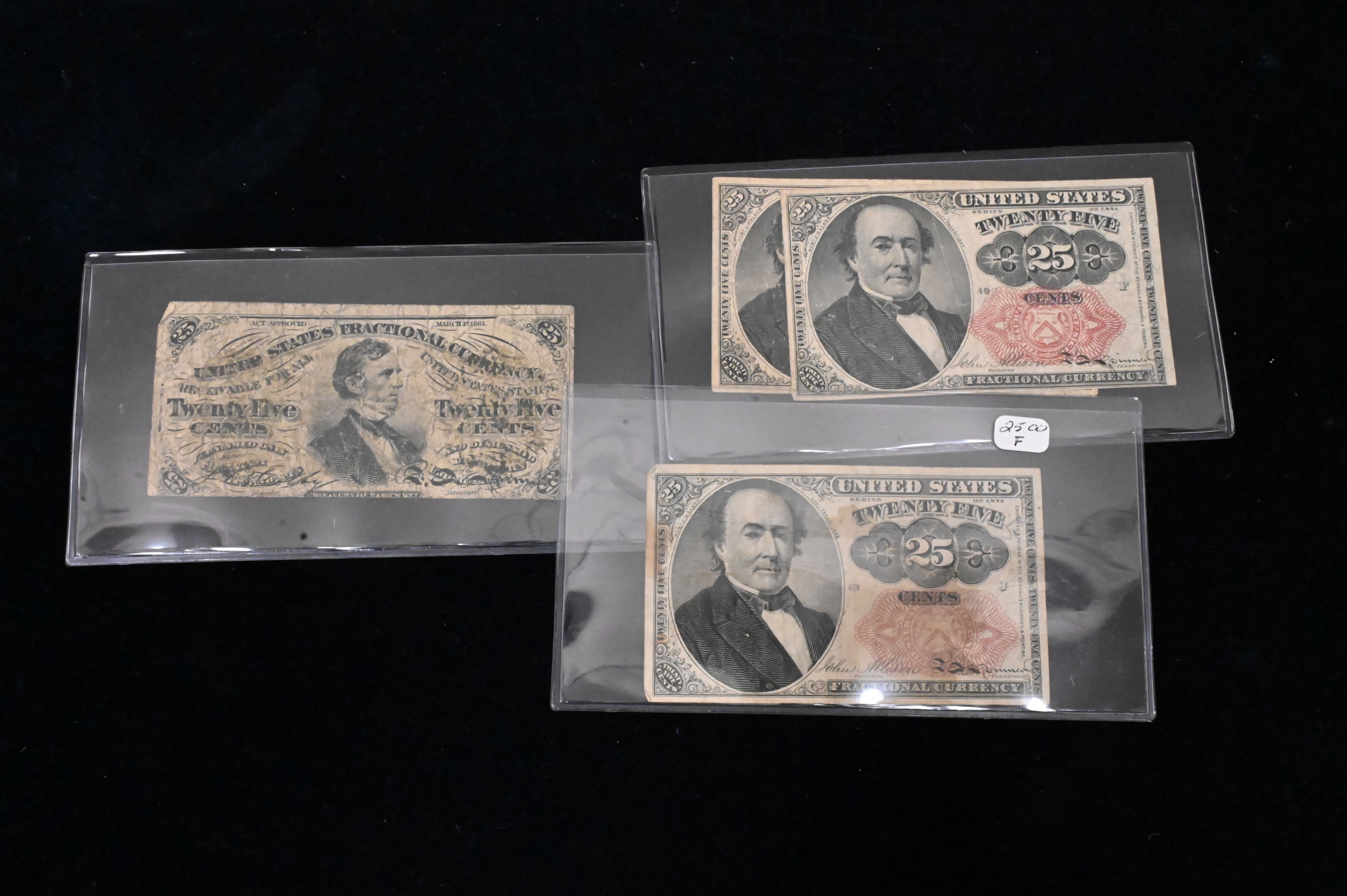 Album with Fractional Currency, four .10¢, five .25¢, one .15¢, one .05¢, and two .50¢