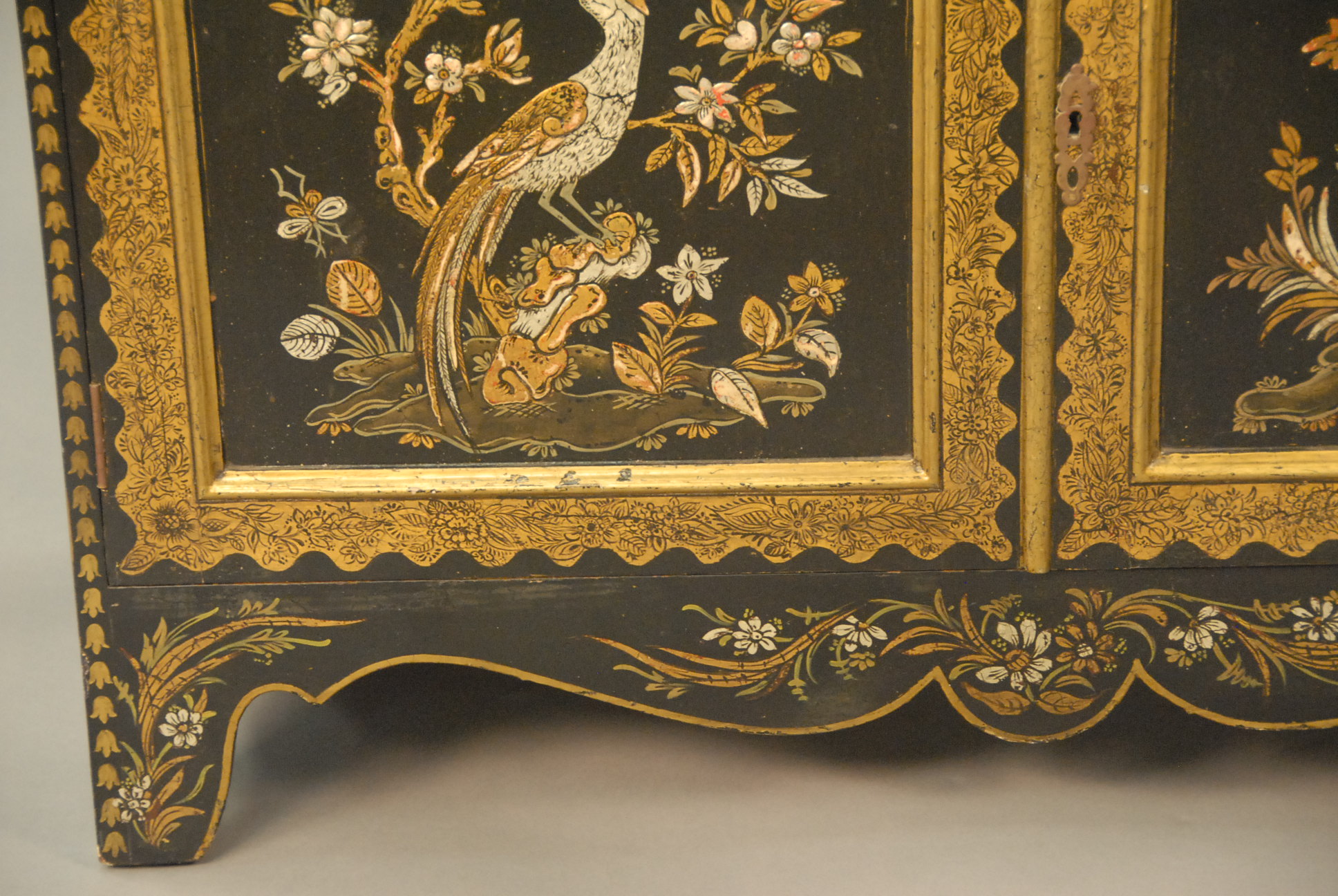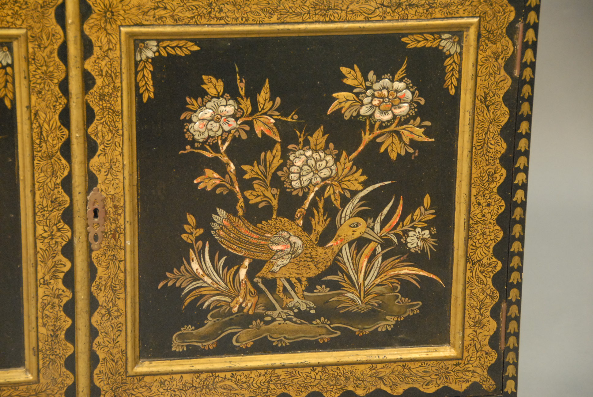 Black lacquered and paint Oriental cabinet with shelf top, ht. 60in. wd. 36in.