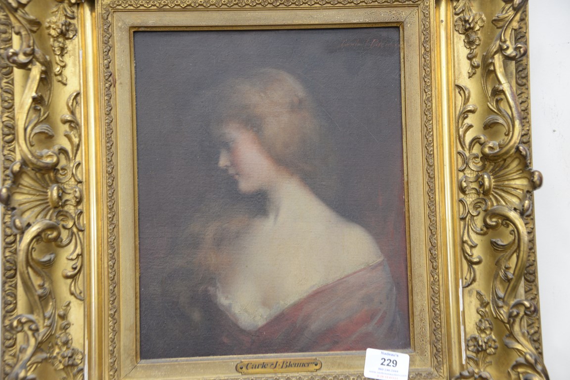 Lot 229: Carle Blenner 1862-1952 oil painting of a portrait of a woman signed top right Carle Blenner, 12 x 10.