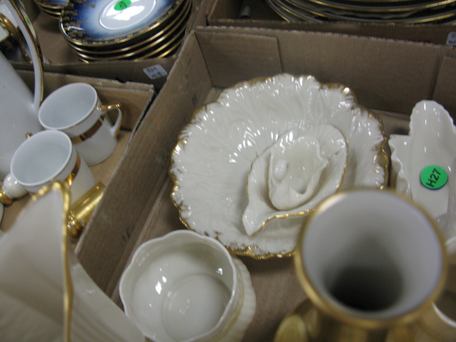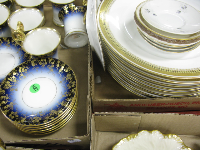 Four box lots several Lenox pieces, small tea set, Limoges cups and saucers and Limoges dinner plates