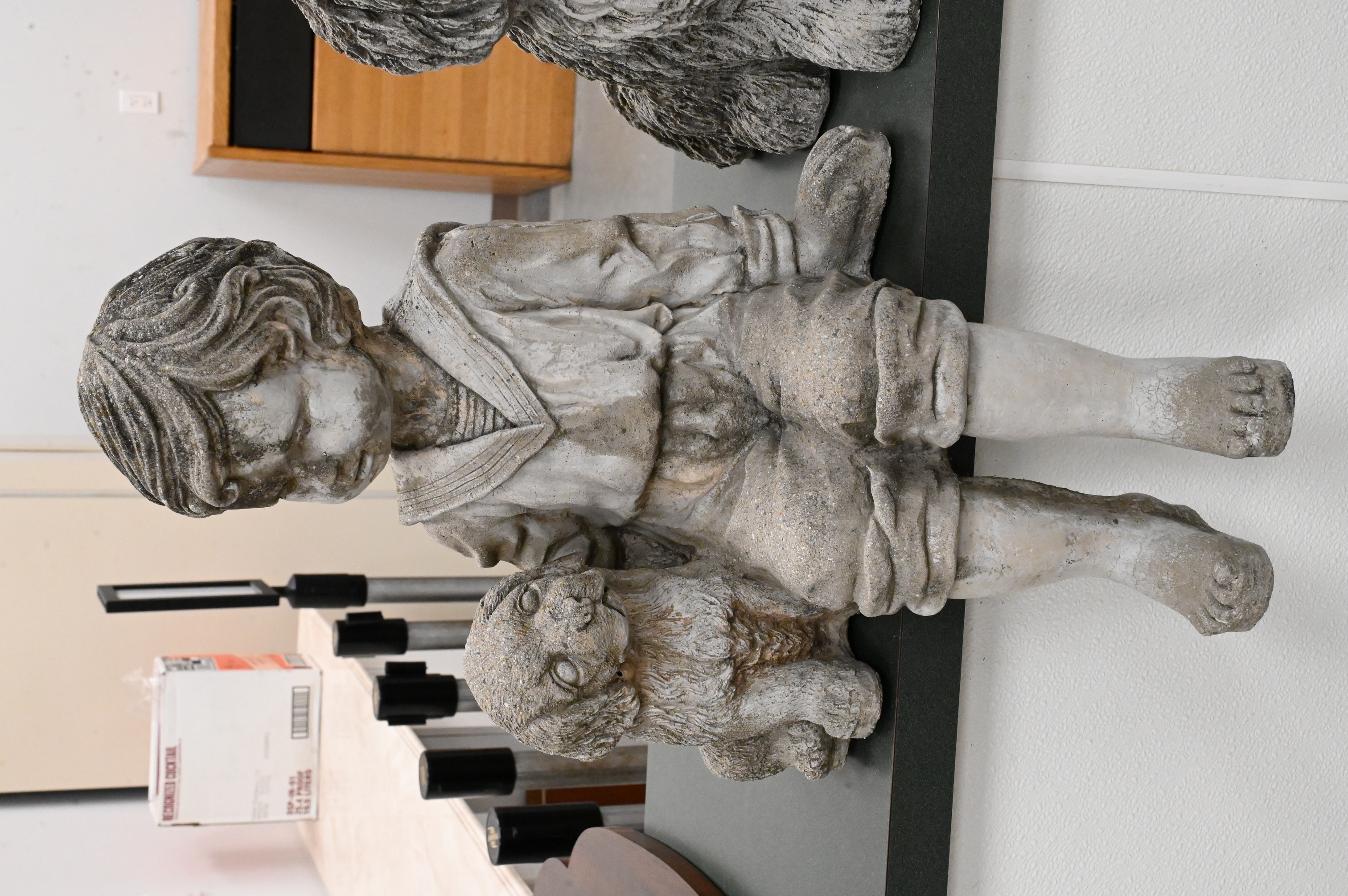 to include seated boy with dog, seated girl in floppy hat (repaired leg) along with two dogs (one repaired tail)