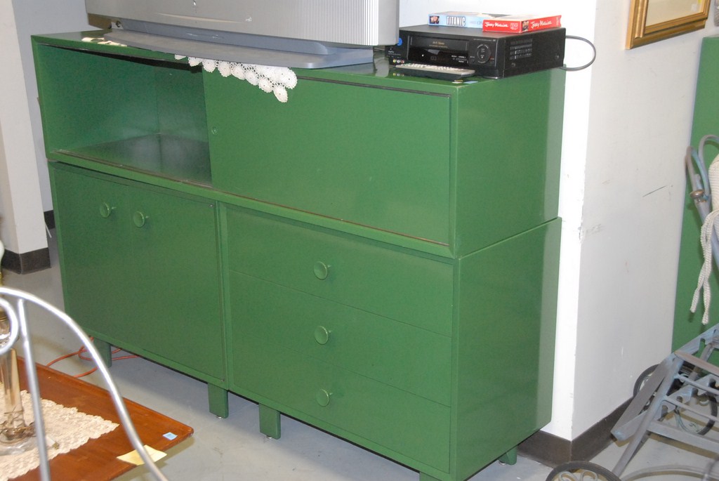 Lot 229: Four part chest / cabinet / desk with drawers and doors, repainted in green