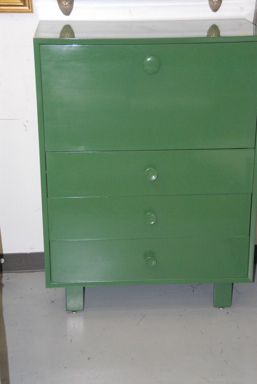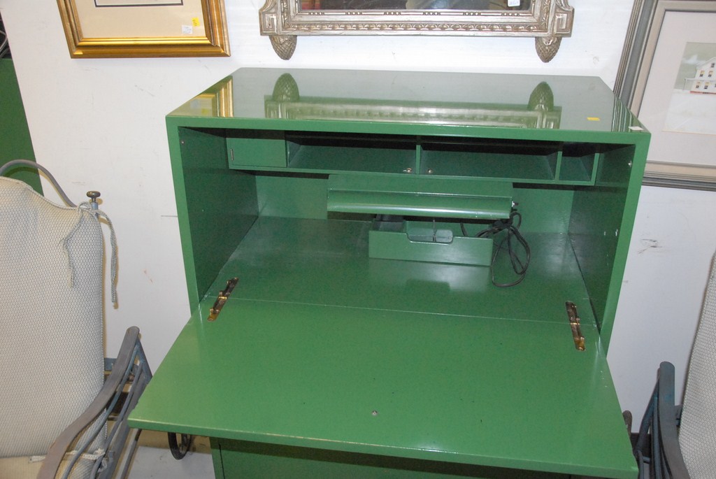 Four part chest / cabinet / desk with drawers and doors, repainted in green. Provenance: property from a home in Rockville Center, New York which was decorated by Iris Apfel.