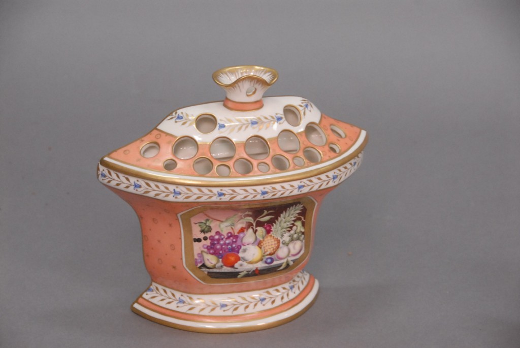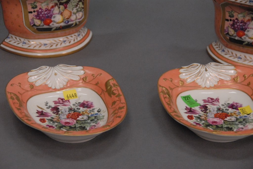 Lot 229: Four piece paint decorated Italian lot two half round bow pots with covers and two serving dishes.