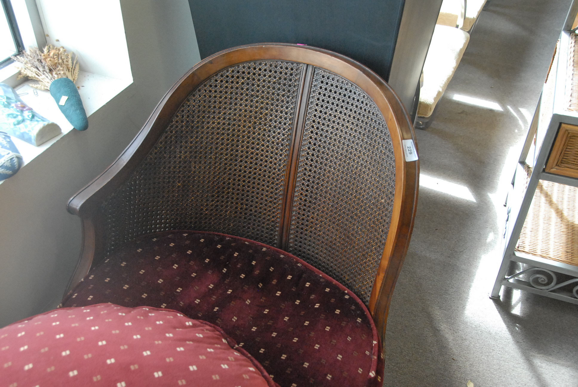 French style chaise lounge with caned back and custom cushions, lg. 58.
