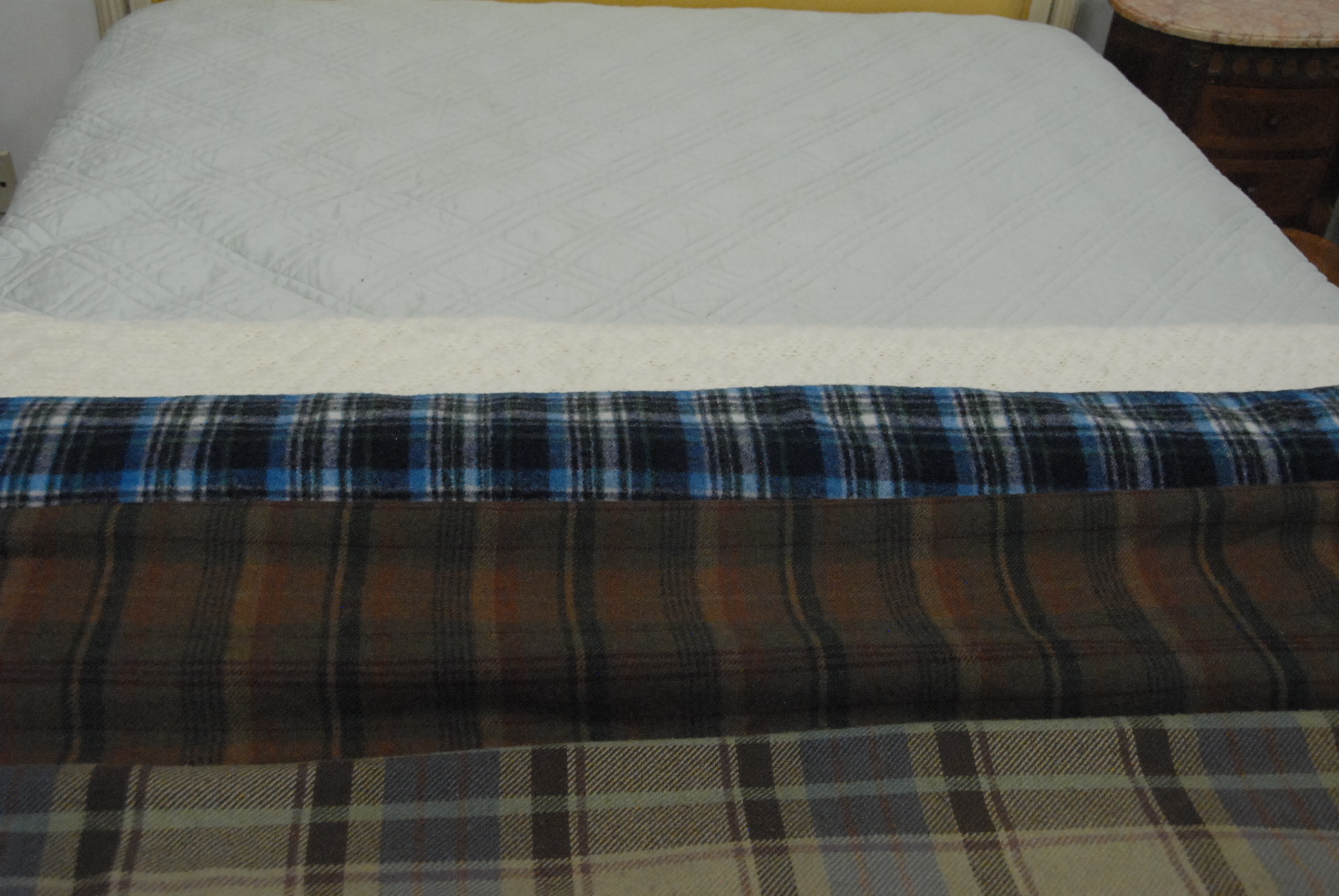 Group of five Ralph Lauren blankets, four throw comforters, and queen size blanket.