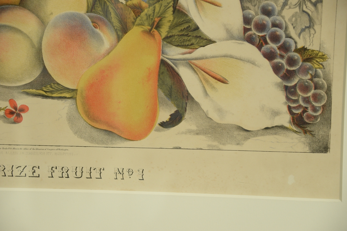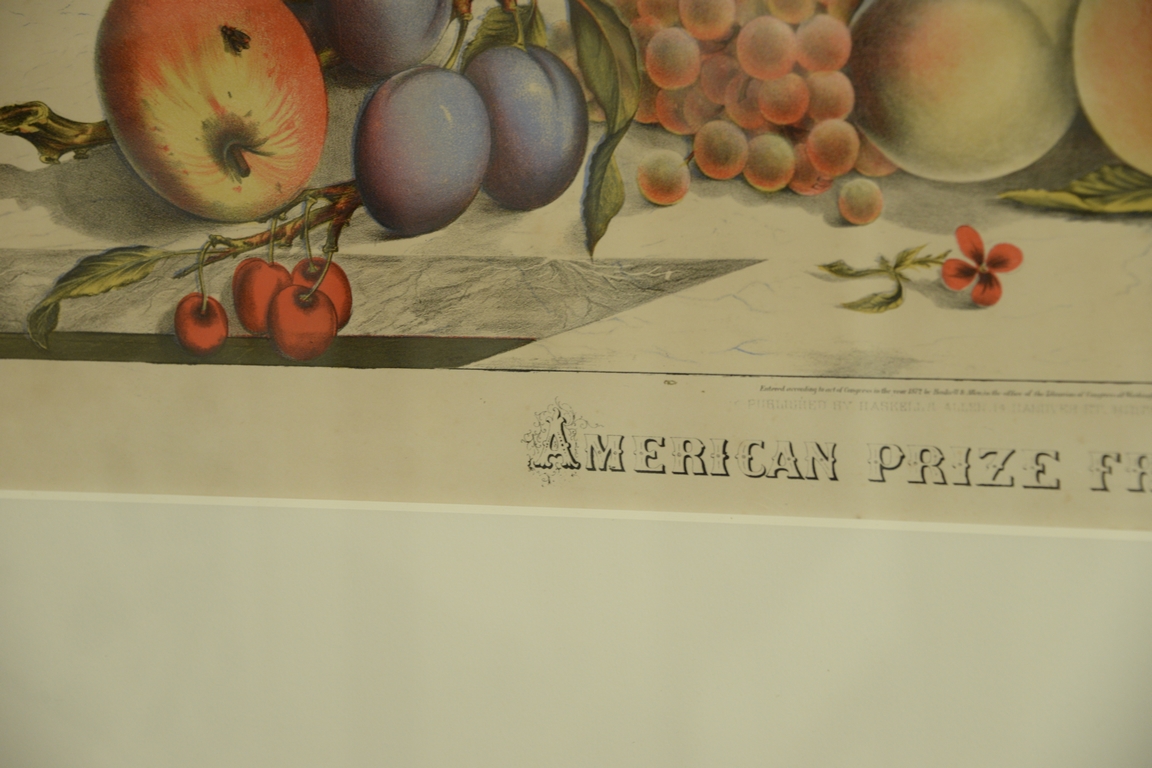 Haskell and Allen handcolored lithograph American Prize Fruit No. 1, published by Haskell & Allen 1872, sight size 19 3/4 x 25 3/4. Provenance: Property from Credit Suisse’s Americana Collection