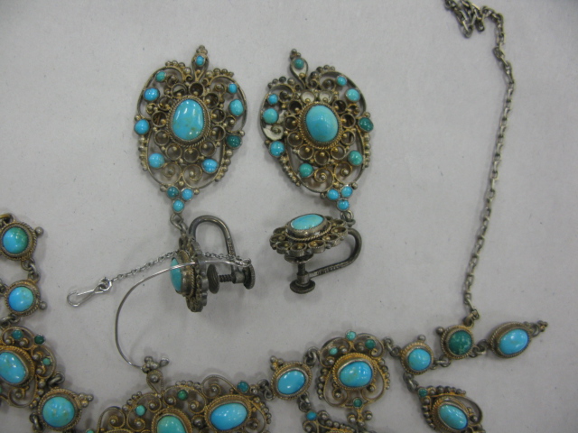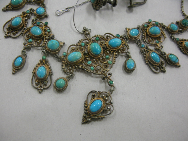 Lavalier set with turquoise and silver choker necklace along with a pair of earrings from the estate of Broadway actress Leta Gold