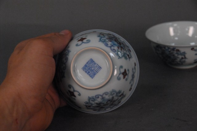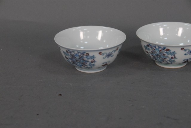 Lot 229: Pair of Famille Rose cups with seal mark on