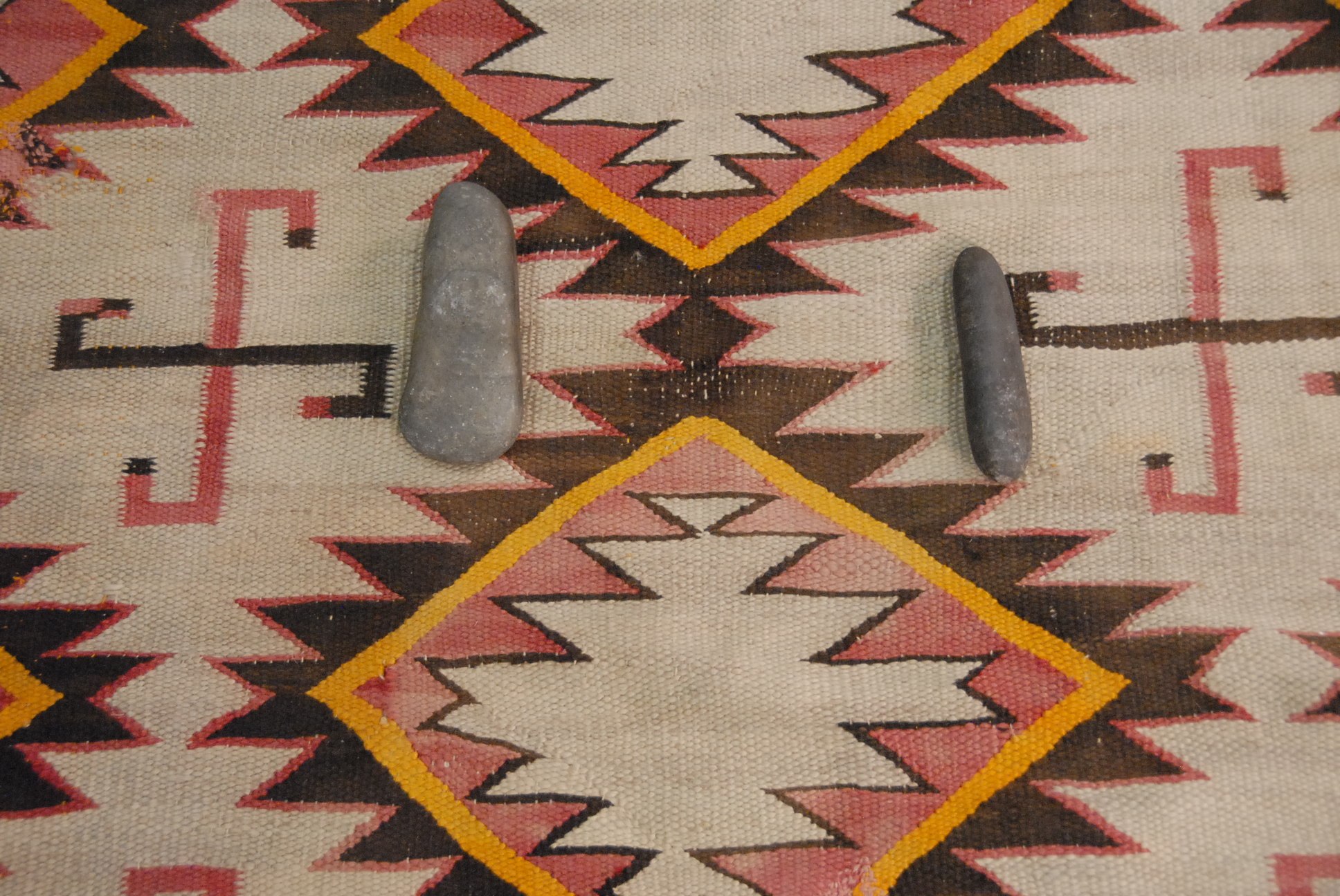 Three piece lot to include American Indian rug and two stone tools 3′ 10 x 5′