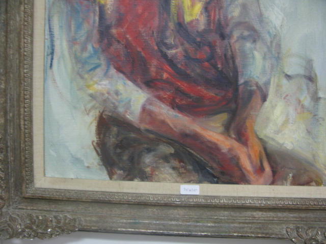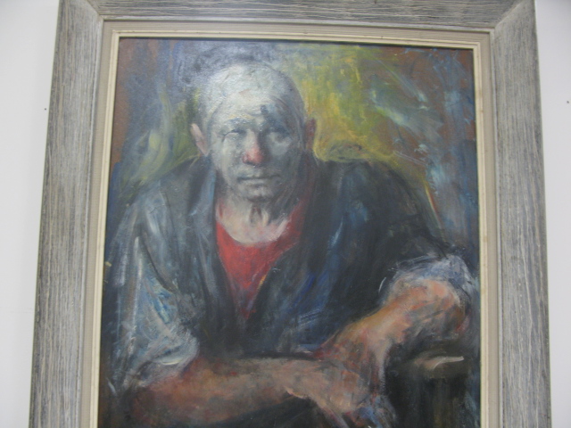 Two paintings, one oil on board, one oil on canvas of clown paintings