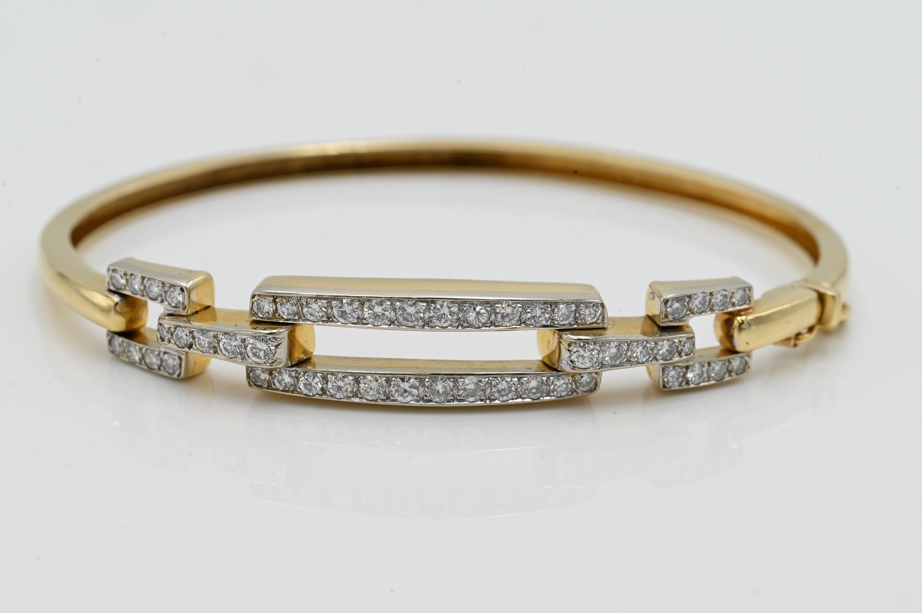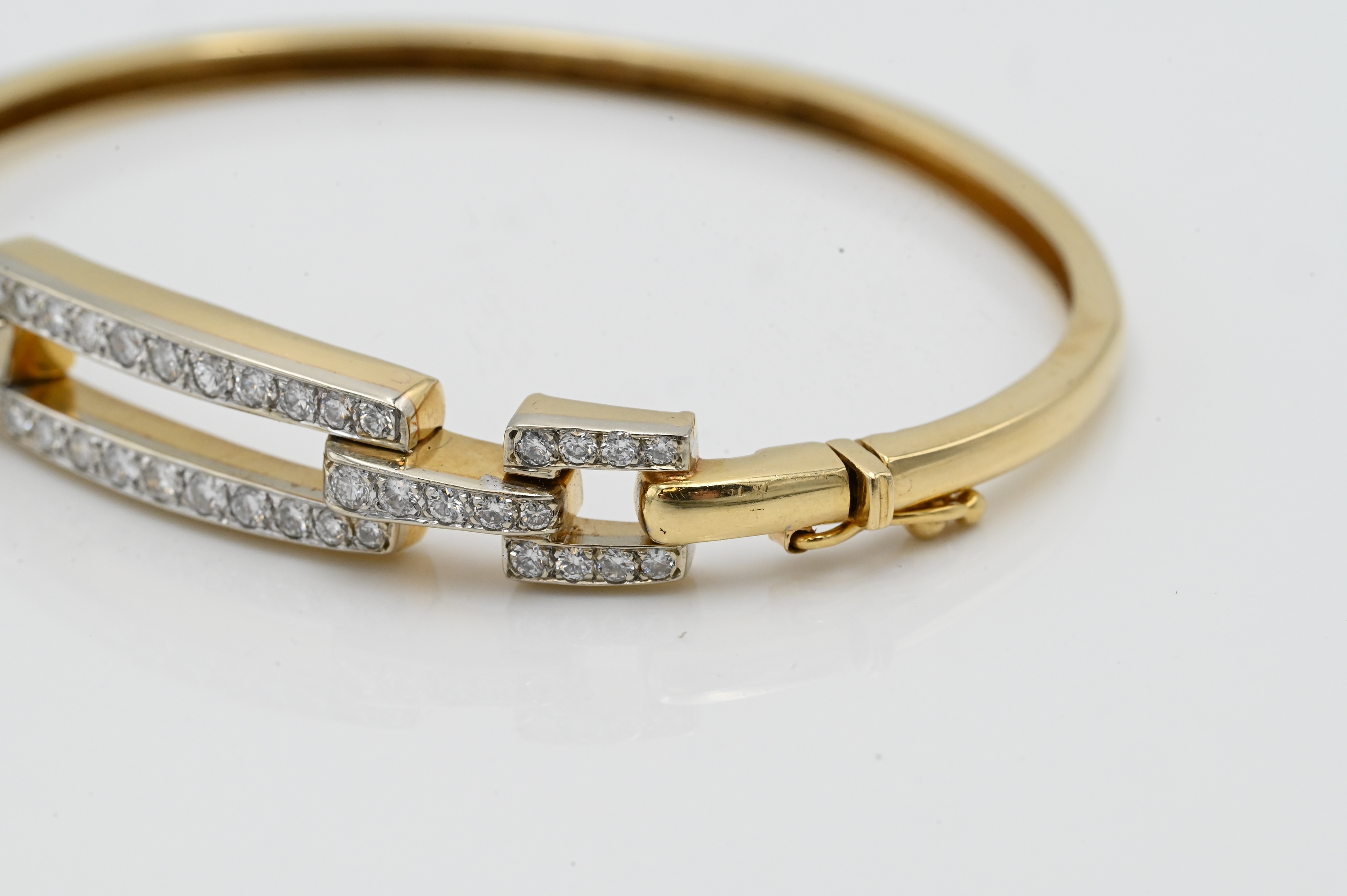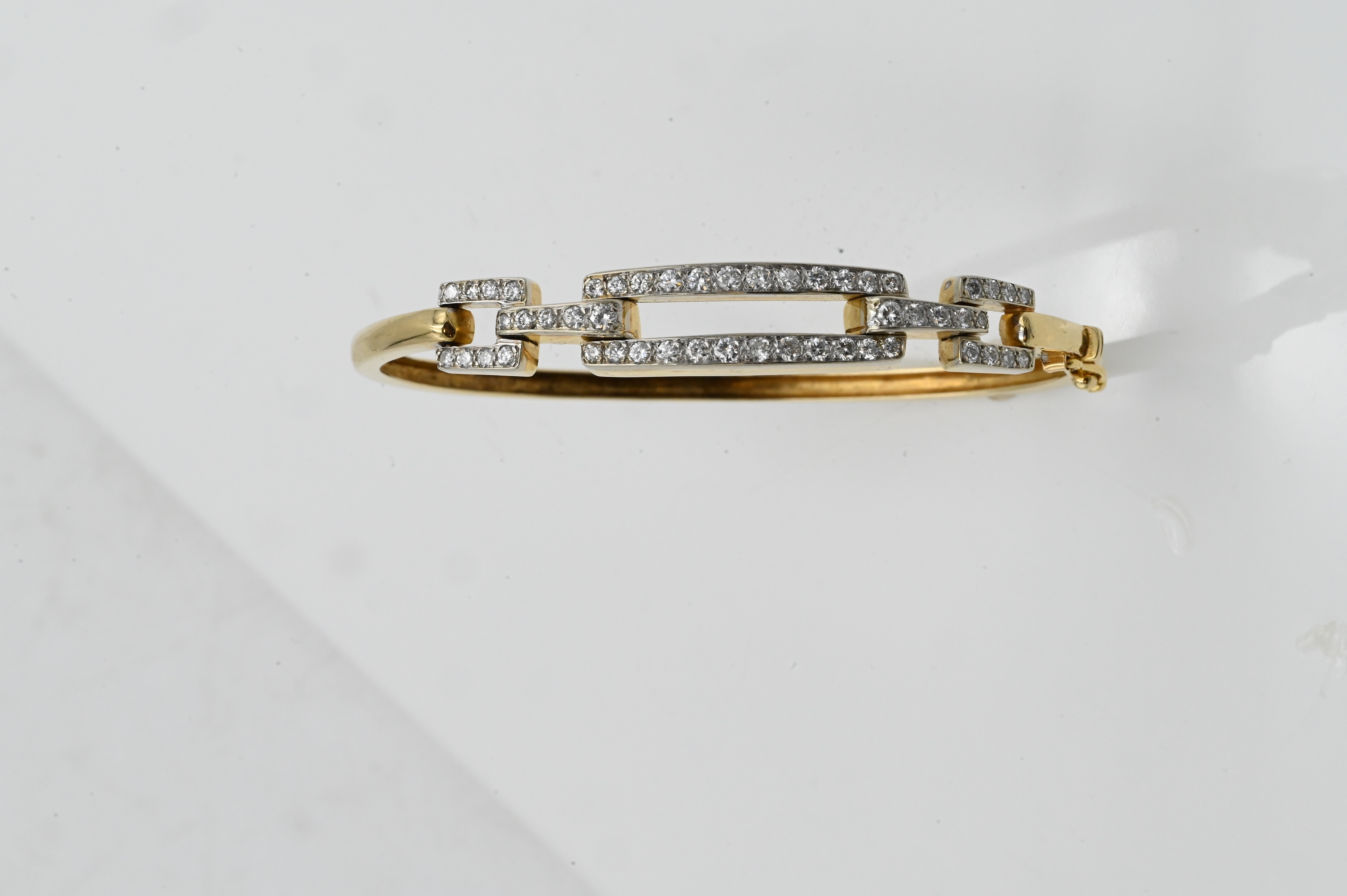 Lot 23: 14K Square and Rectangular Design Yellow Gold Bangle having Diamonds