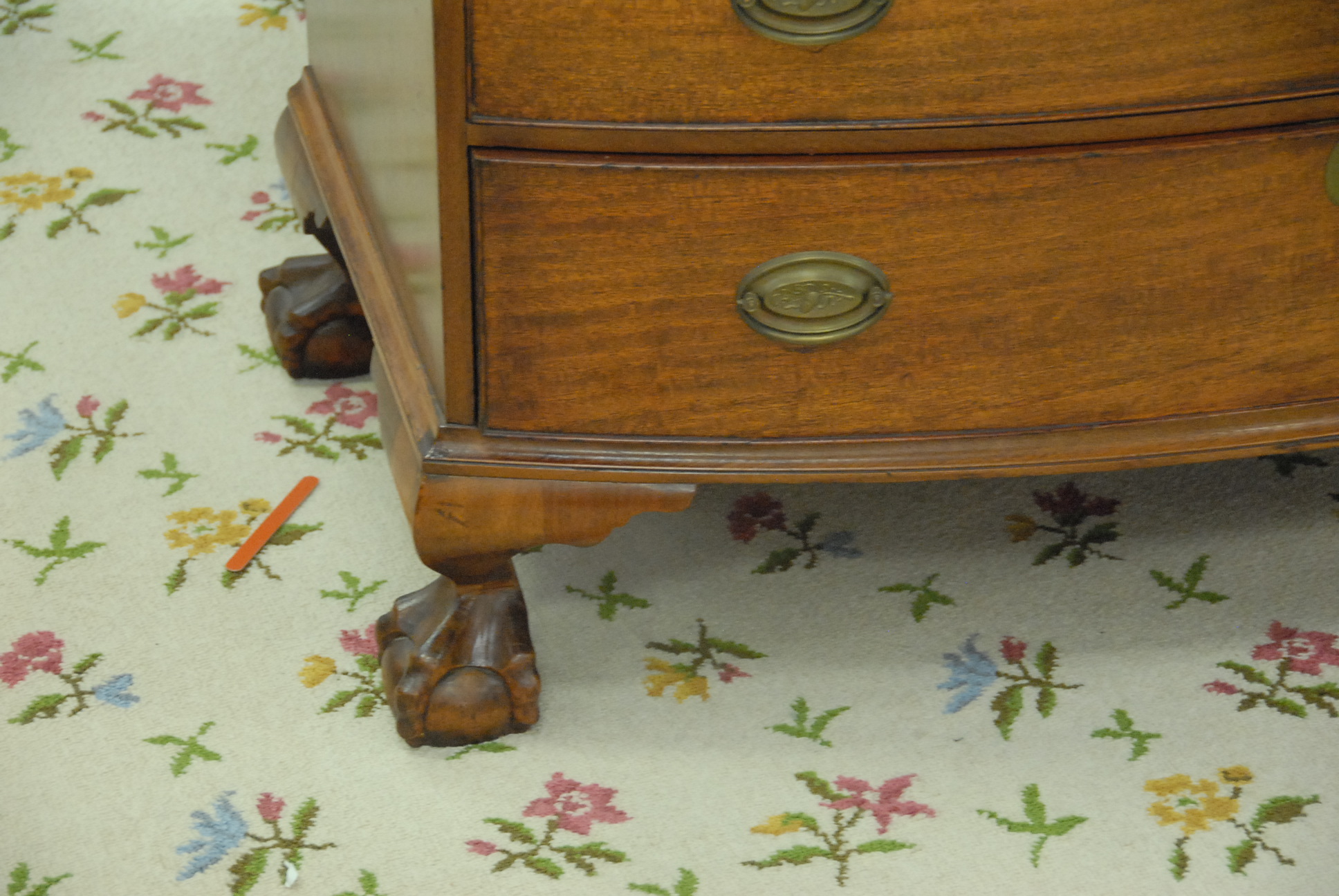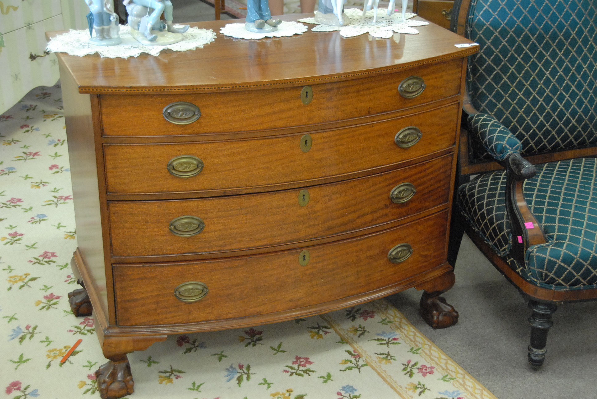 Chippendale style mahogany chest with bowed front and ball and claw feet, wd. 40.