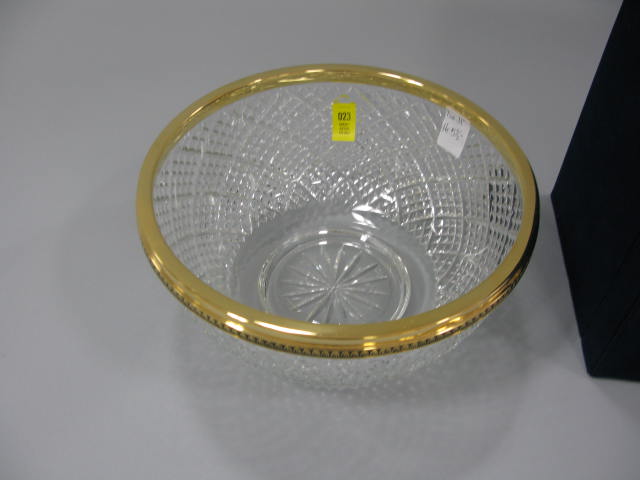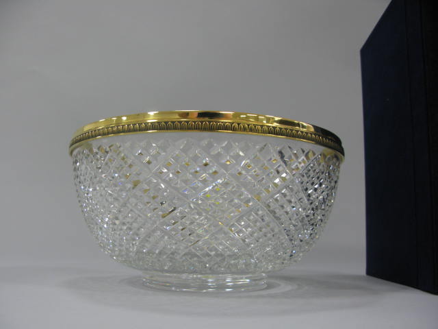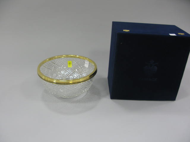 Faberge crystal bowl in blue fitted felt box with brass rim