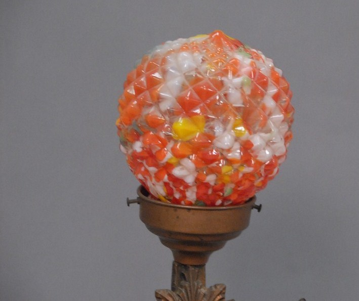 Figural art nouveau lamp with various colored globe, ht. 21in.