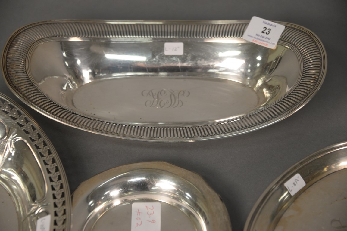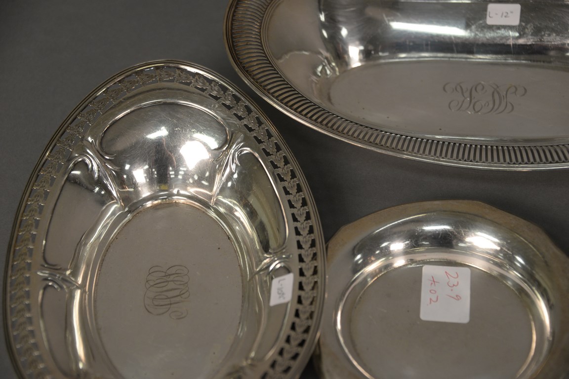 Four sterling silver various plates. lg. 12 1/2 in. lg. 12 in. lg. 8 1/2 in. dia. 6 in. 23.9 t oz.