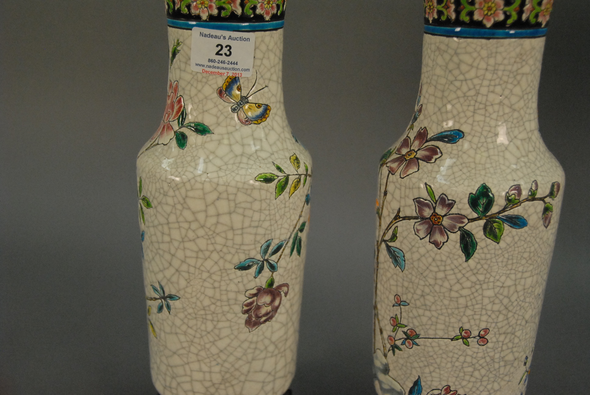 Pair of Longwy French enamel vases, vase ht. 13in.