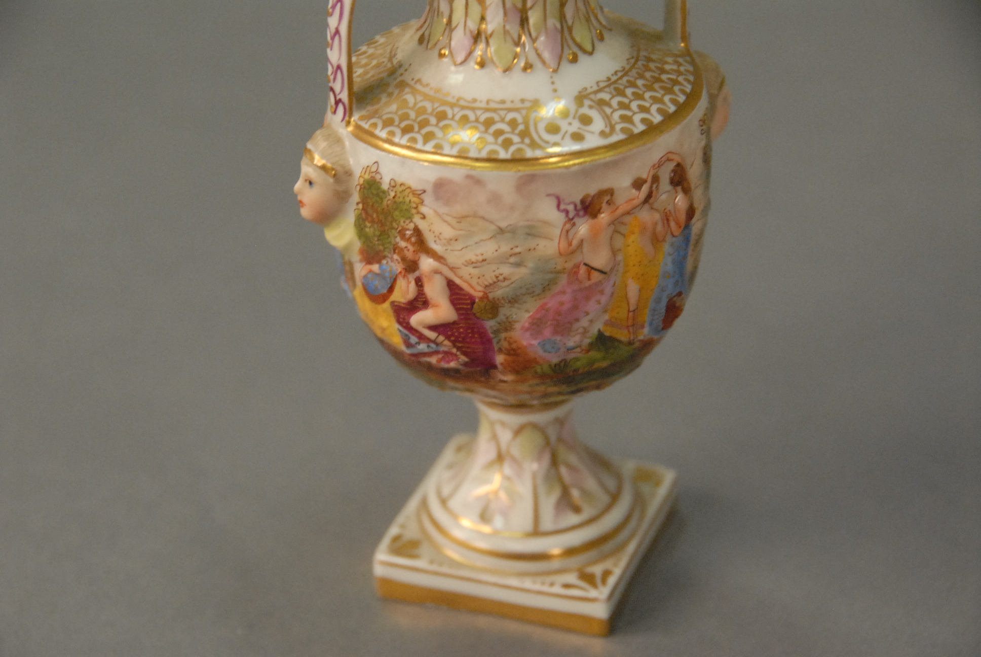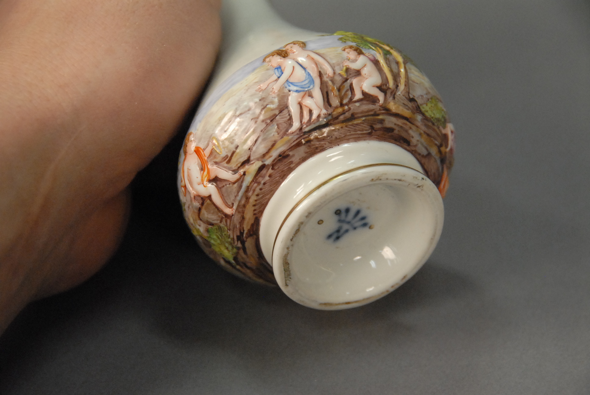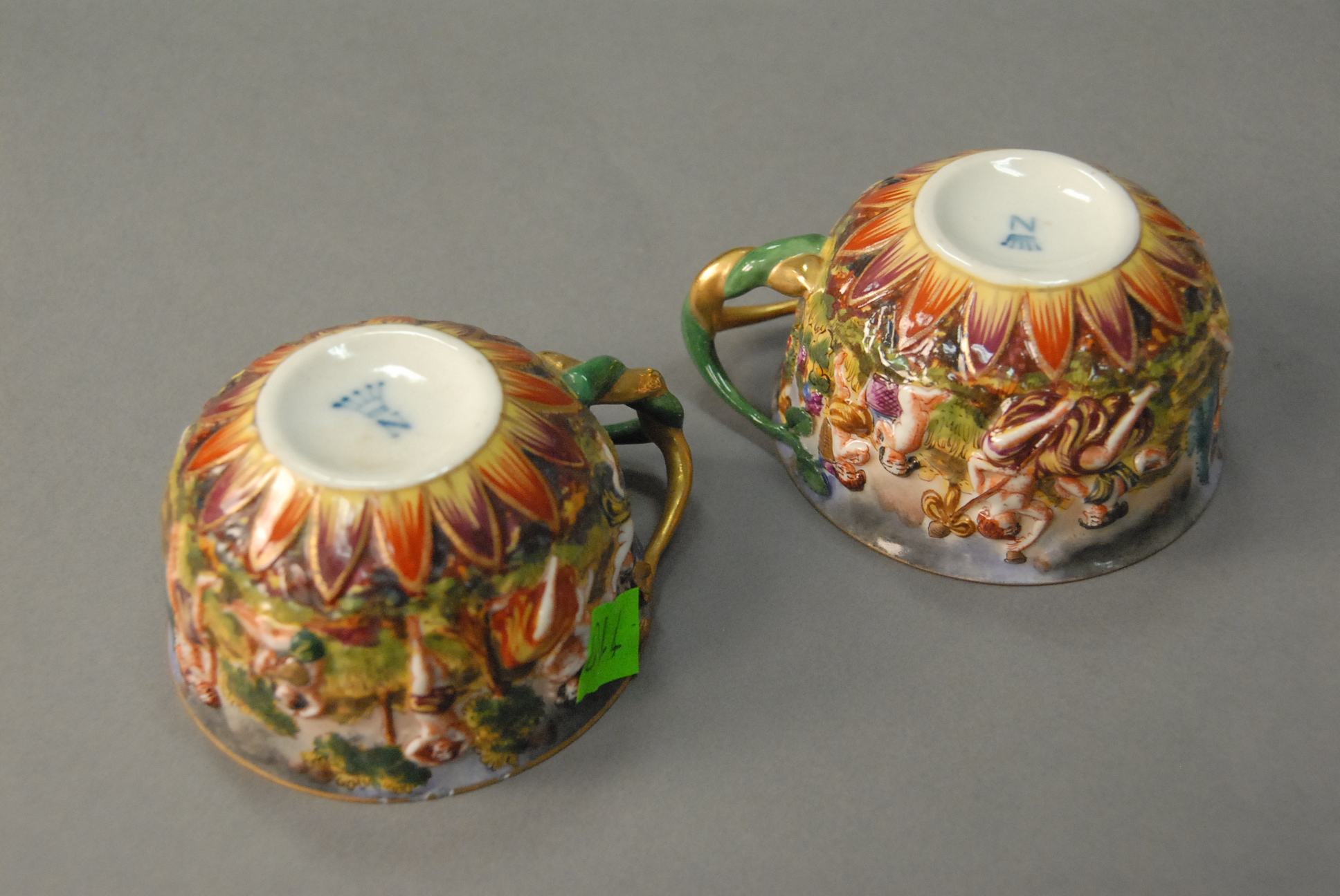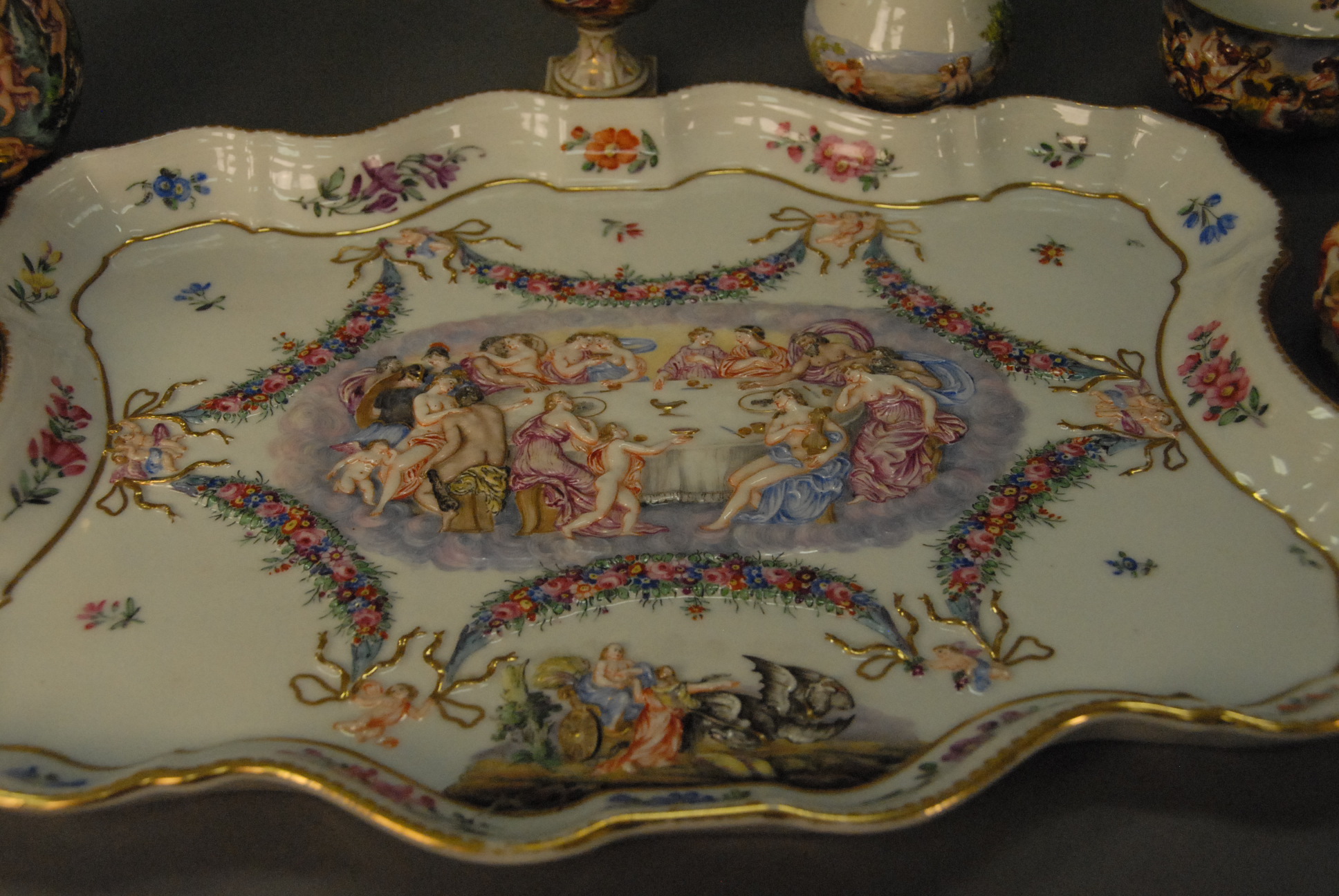 Seven piece Capo-di-monte lot with tray, oval box, pitcher repaired handle, vases, and cups, tray: lg. 15in. wd. 12in.