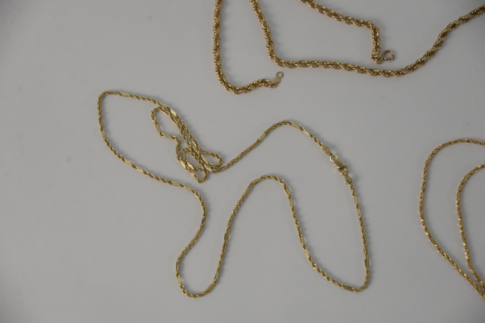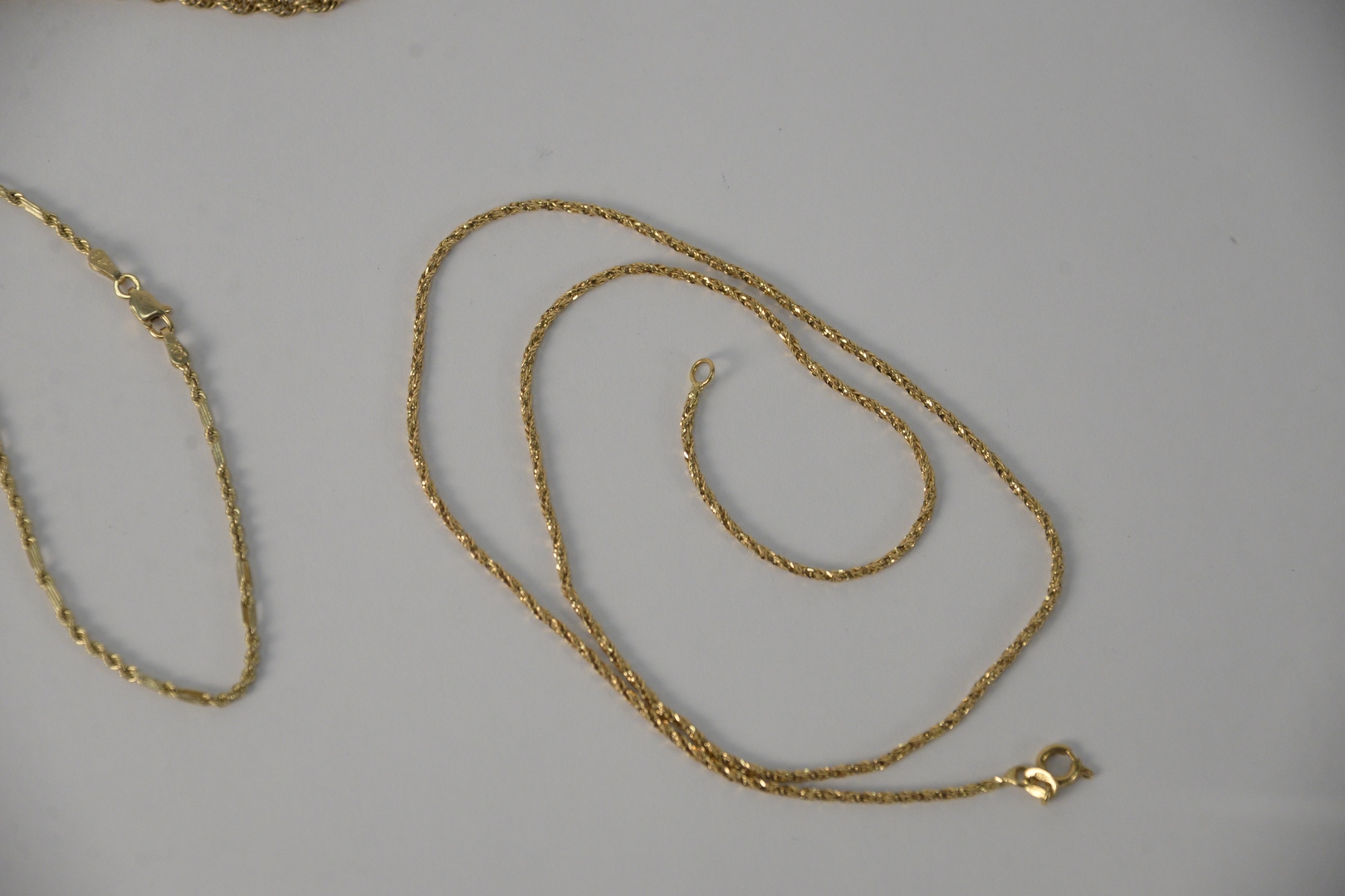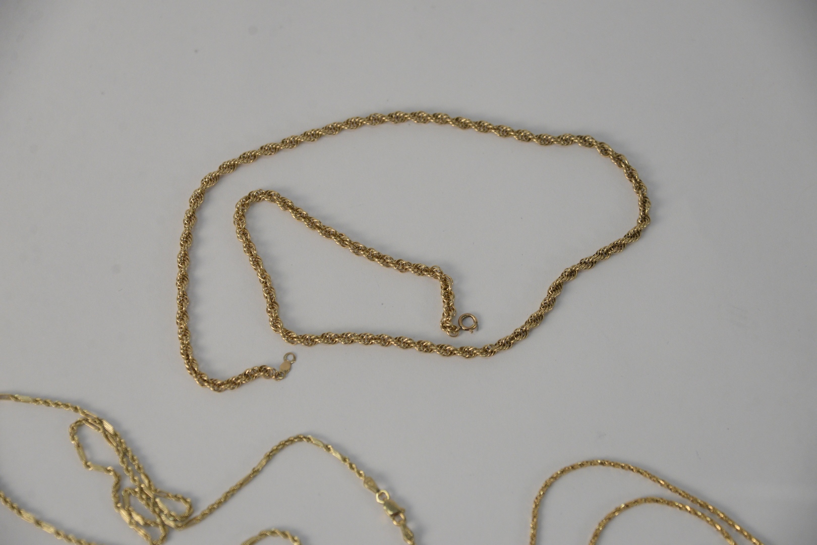 Three 14 Karat Gold Chains, with clasps, 18″, 19″, 22″, 21.9 grams.