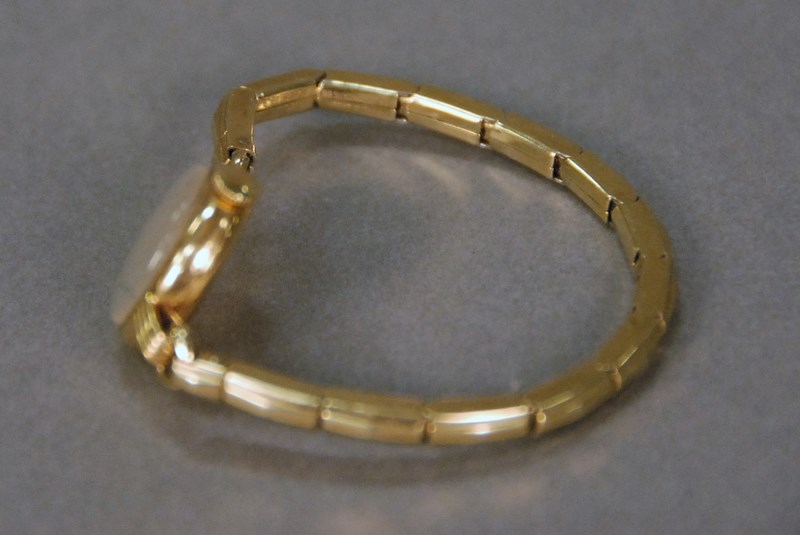Tiffany 14K gold ladies wristwatch, works signed E. Huguenin, dial marked Tiffany & Co.