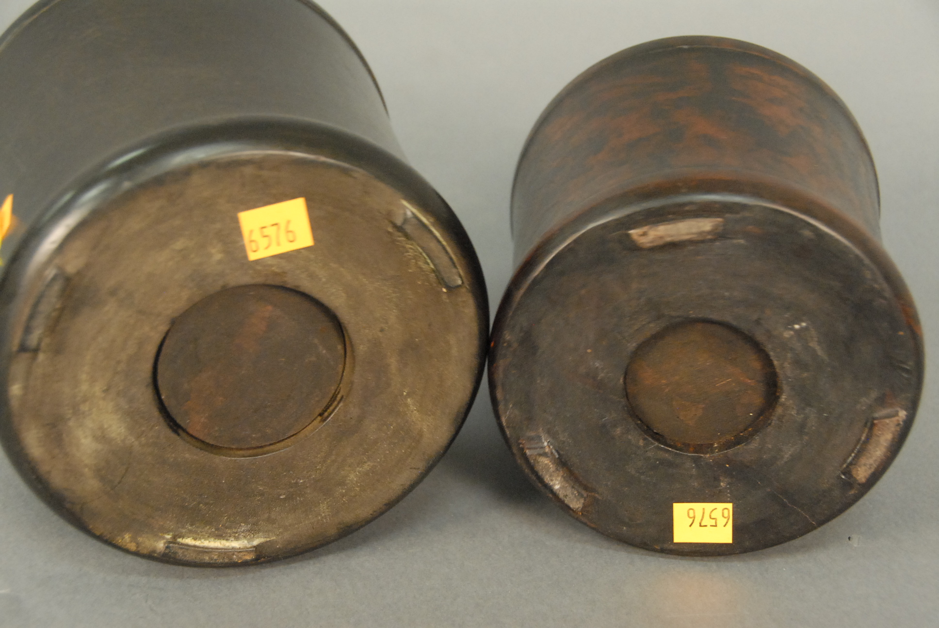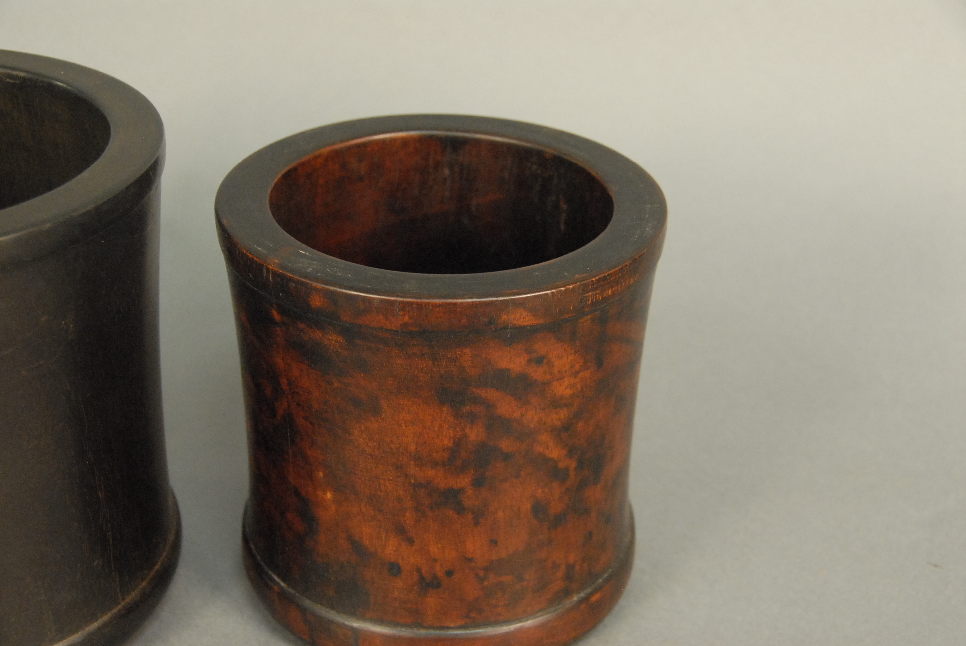 Two hardwood brush pots, ht. 6in. dia. 6in. & ht. 7in. dia. 7in.