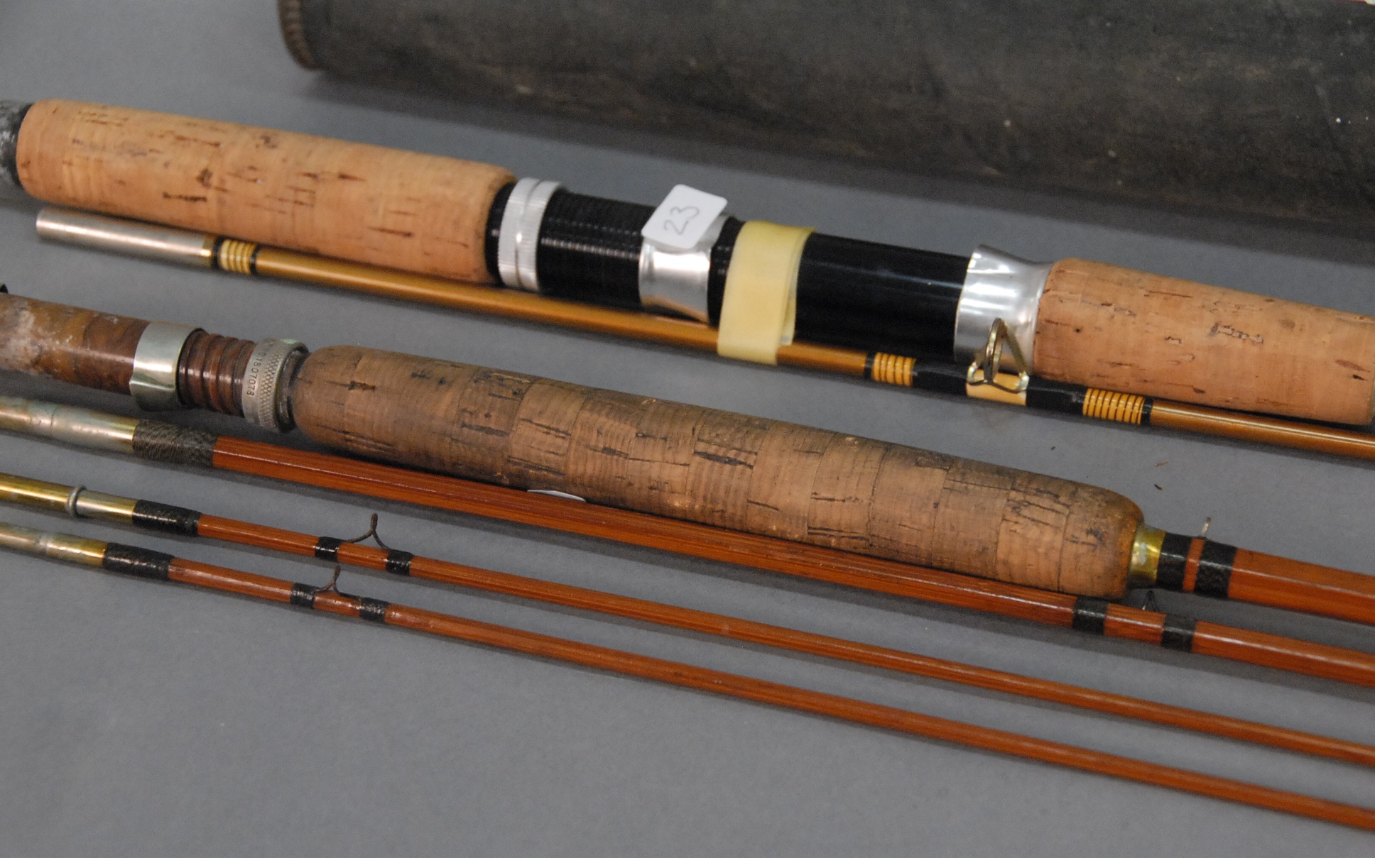 Lot 23: Two Heddon Rods including vintage Heddon #10 bamboo fly rod three part rod center part as is along with a Heddon spinning rod.