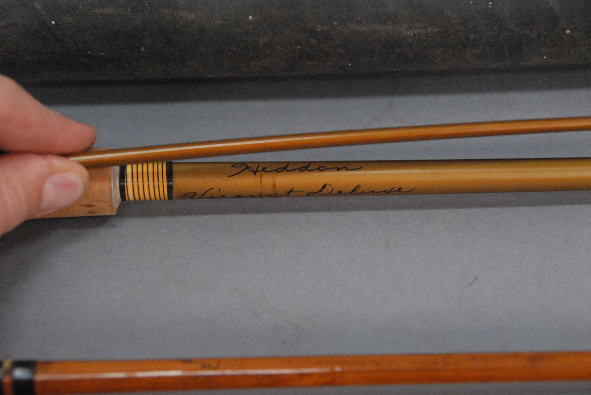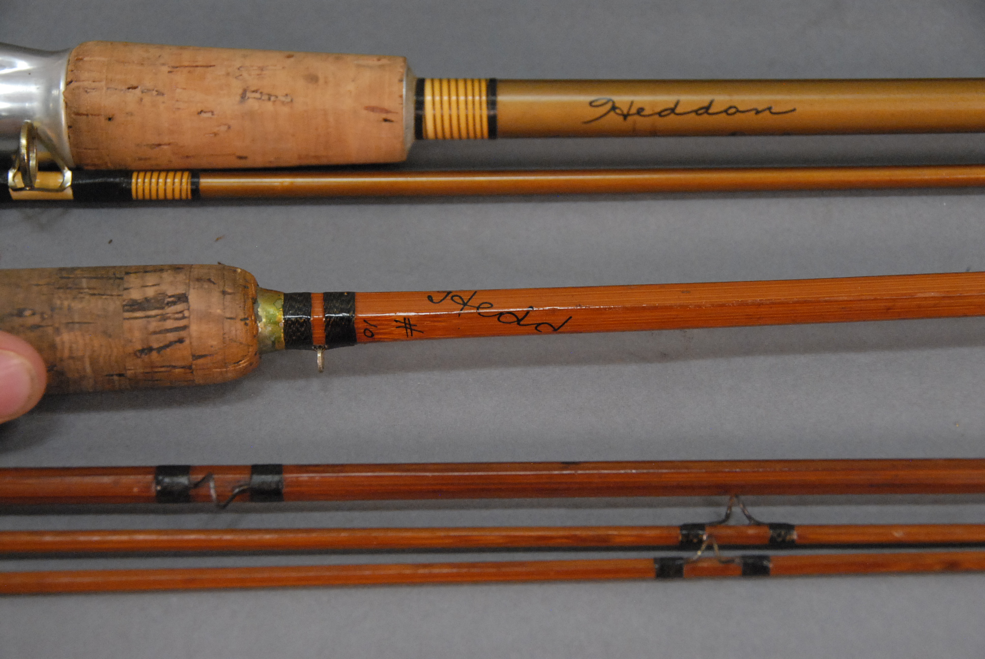 Two Heddon Rods including vintage Heddon #10 bamboo fly rod three part rod center part as is along with a Heddon spinning rod.