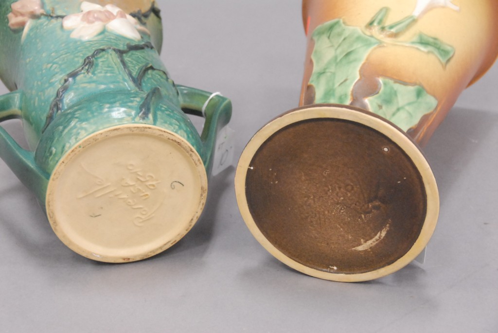 Two Roseville vases one is 95-10, hts. 10 & 13