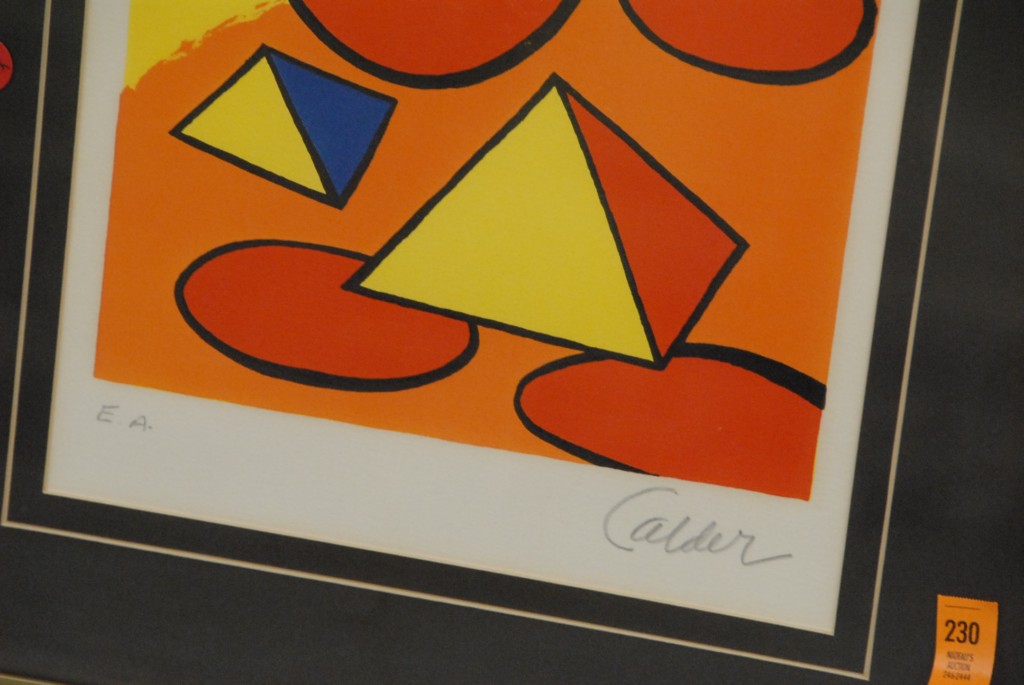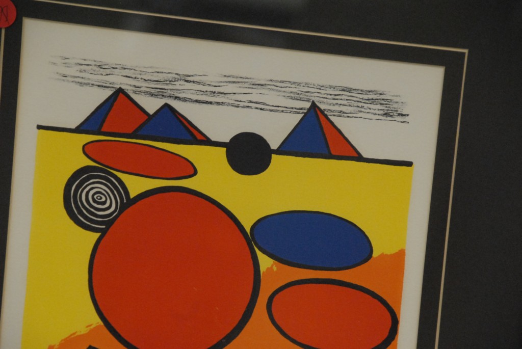 Alexander Calder 1898 – 1976 lithograph composition with pyramids, circles, and clouds. Signed lower right Calder and lower left E. A.