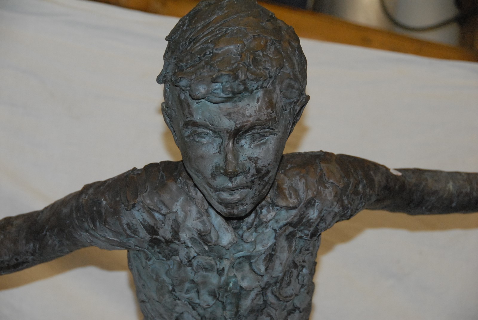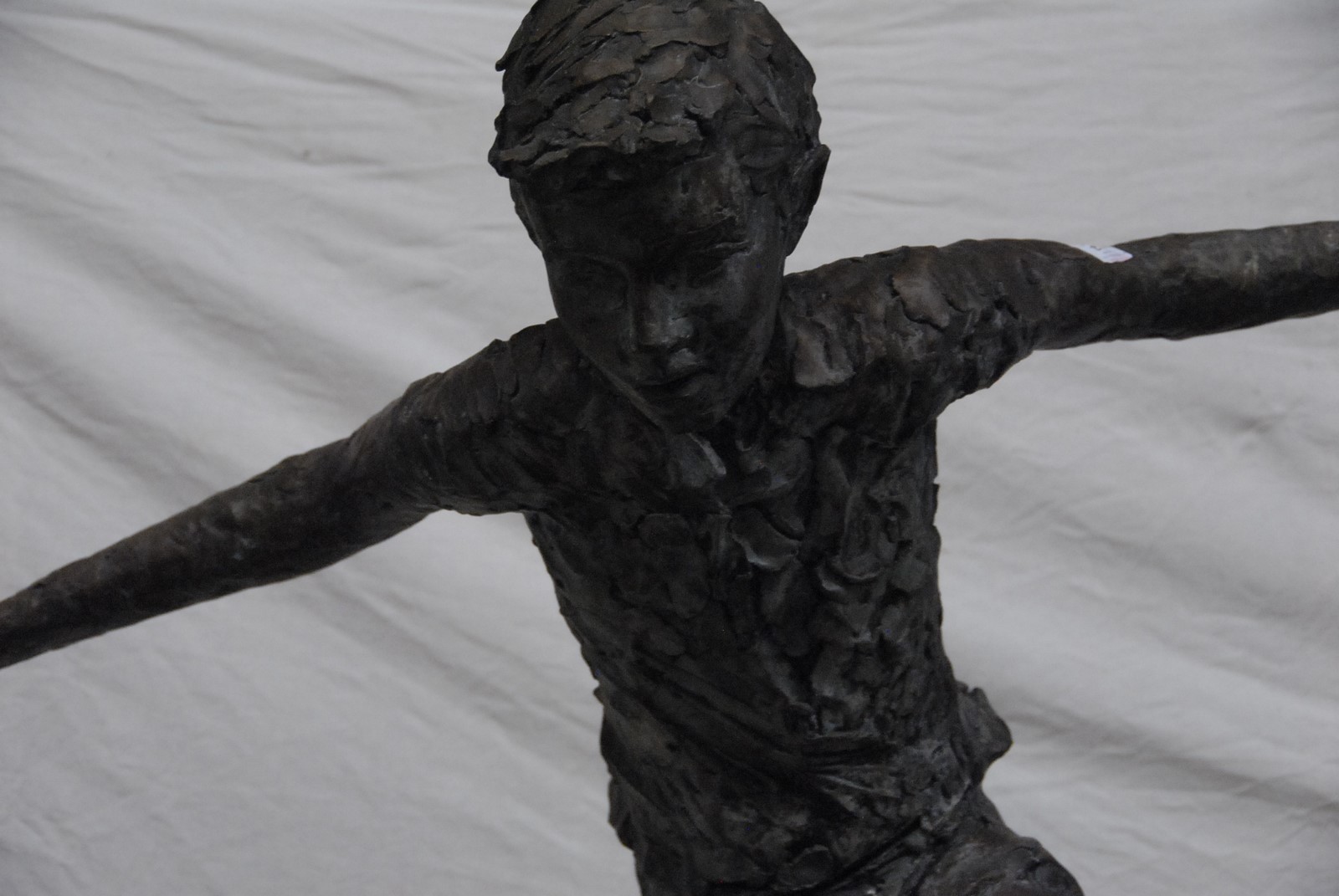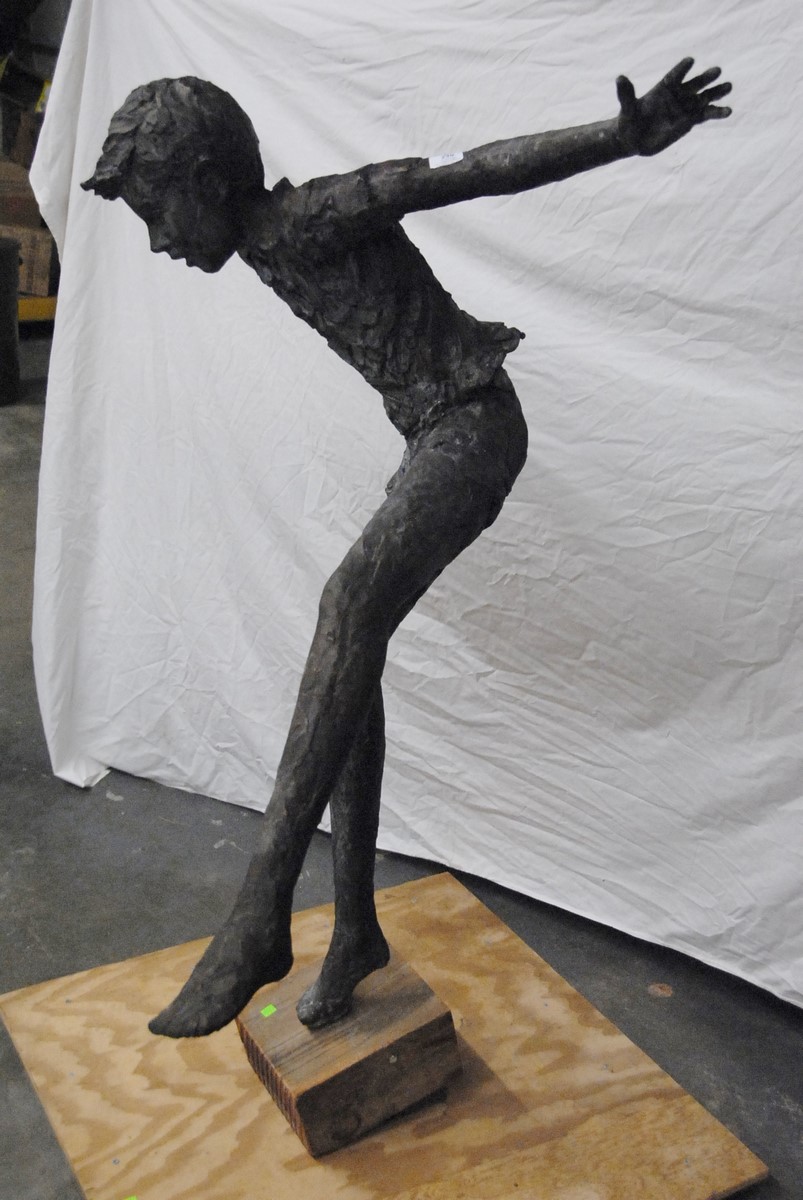 Lot 230: Dennis Smith THE BALANCING BOY Bronze sculpture 6/9 now with wood stand ht. 54 in. Provenance: Purchased from Knox Gallery, Vail Colorado, Agent for Dennis Smith