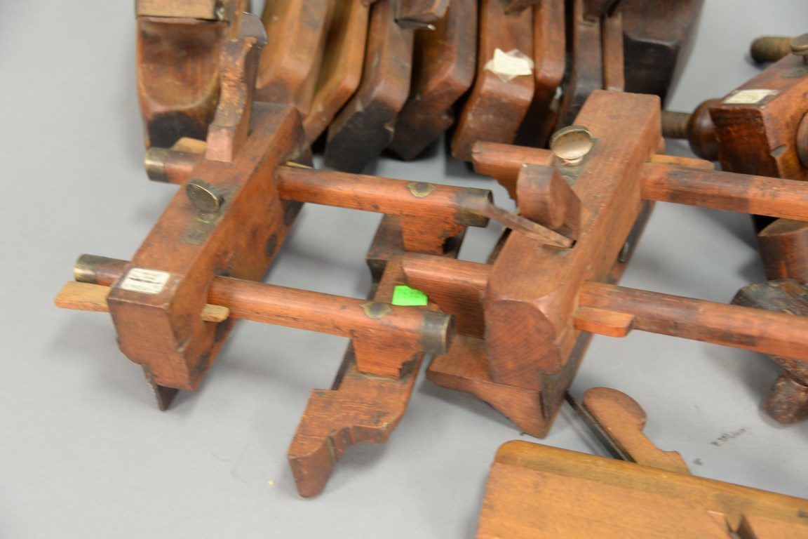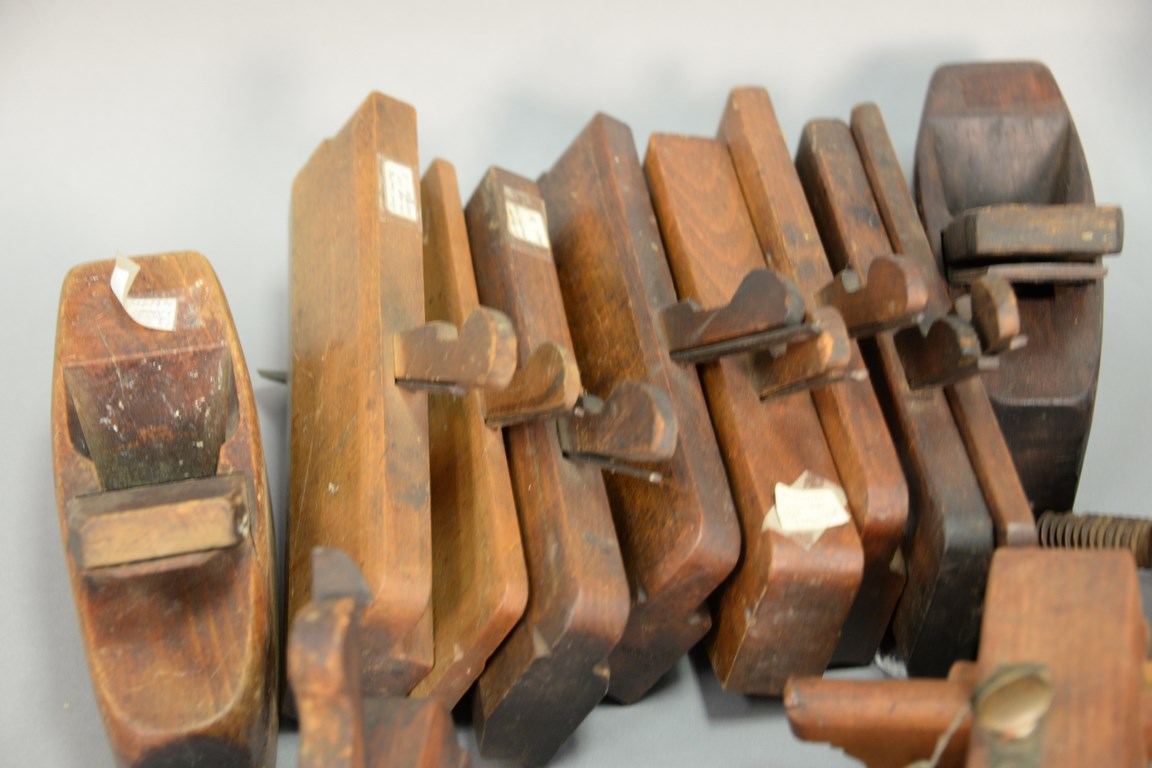 Lot 230: Large group of wood planes, 16 total including old Timer, Ownaco NY, A Raulend Molding Plane and Ohio Tool Rabbit Plane. sma…