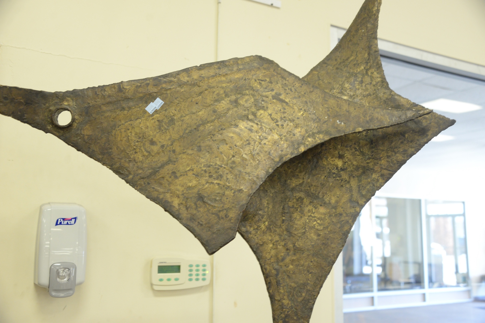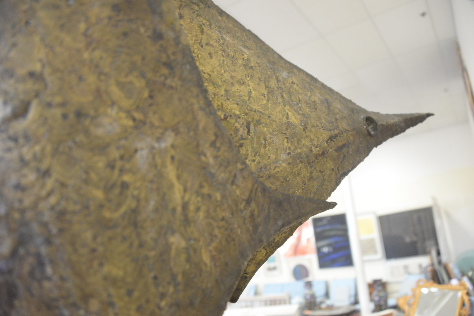 Lot 230: Luciano Minguzzi (Italian, 1911-2004), Shadows, circa 1959, bronze sculpture on wood pedestal base, height 94 inches, width 49 inches.