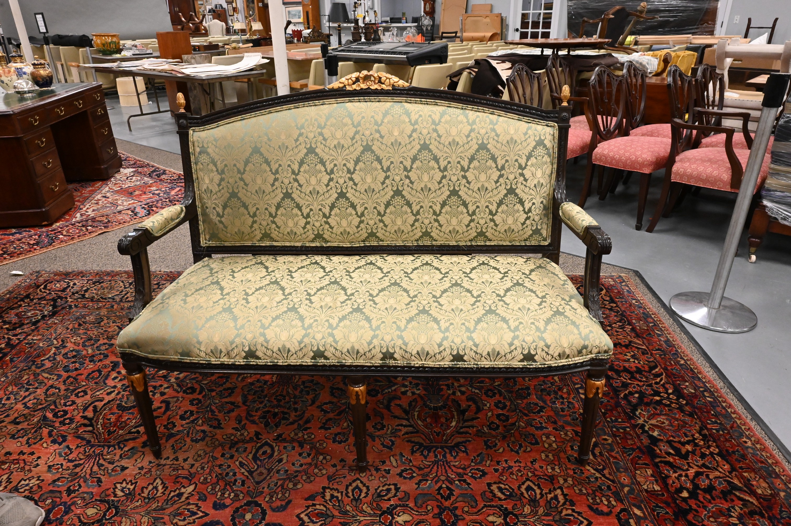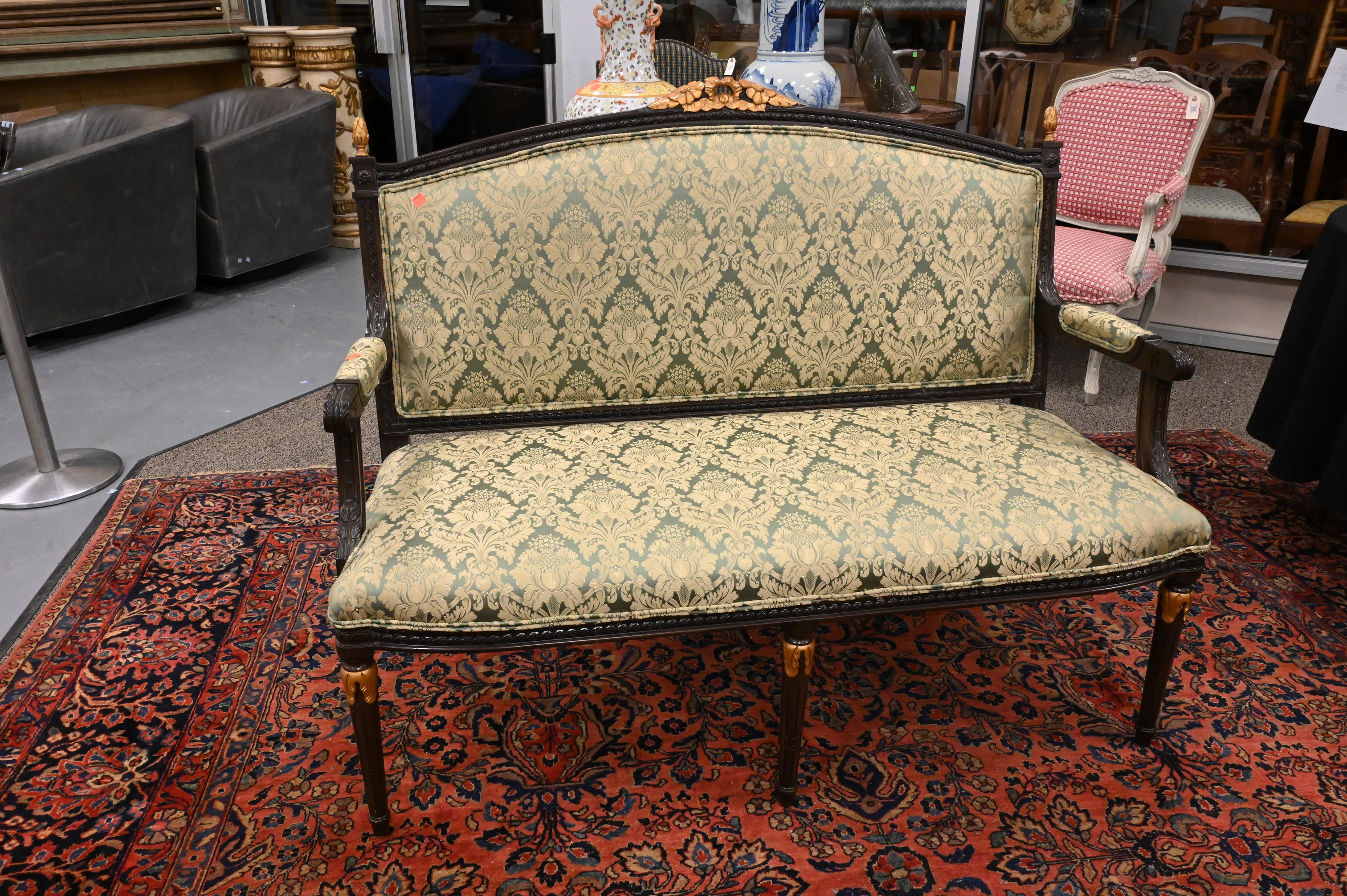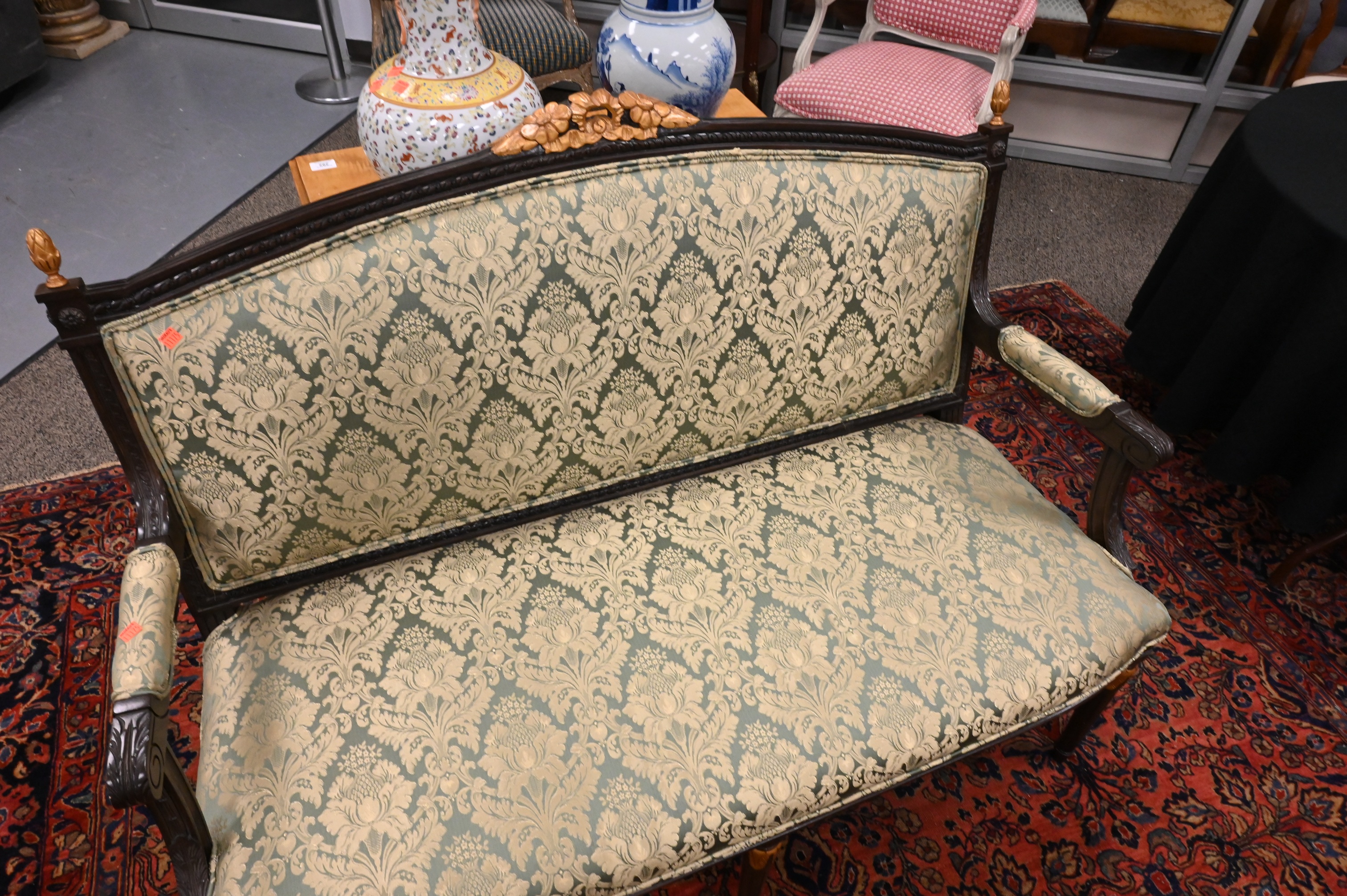 Lot 230: Pair of Louis XVI Style Settees with Silk Damask Upholstery