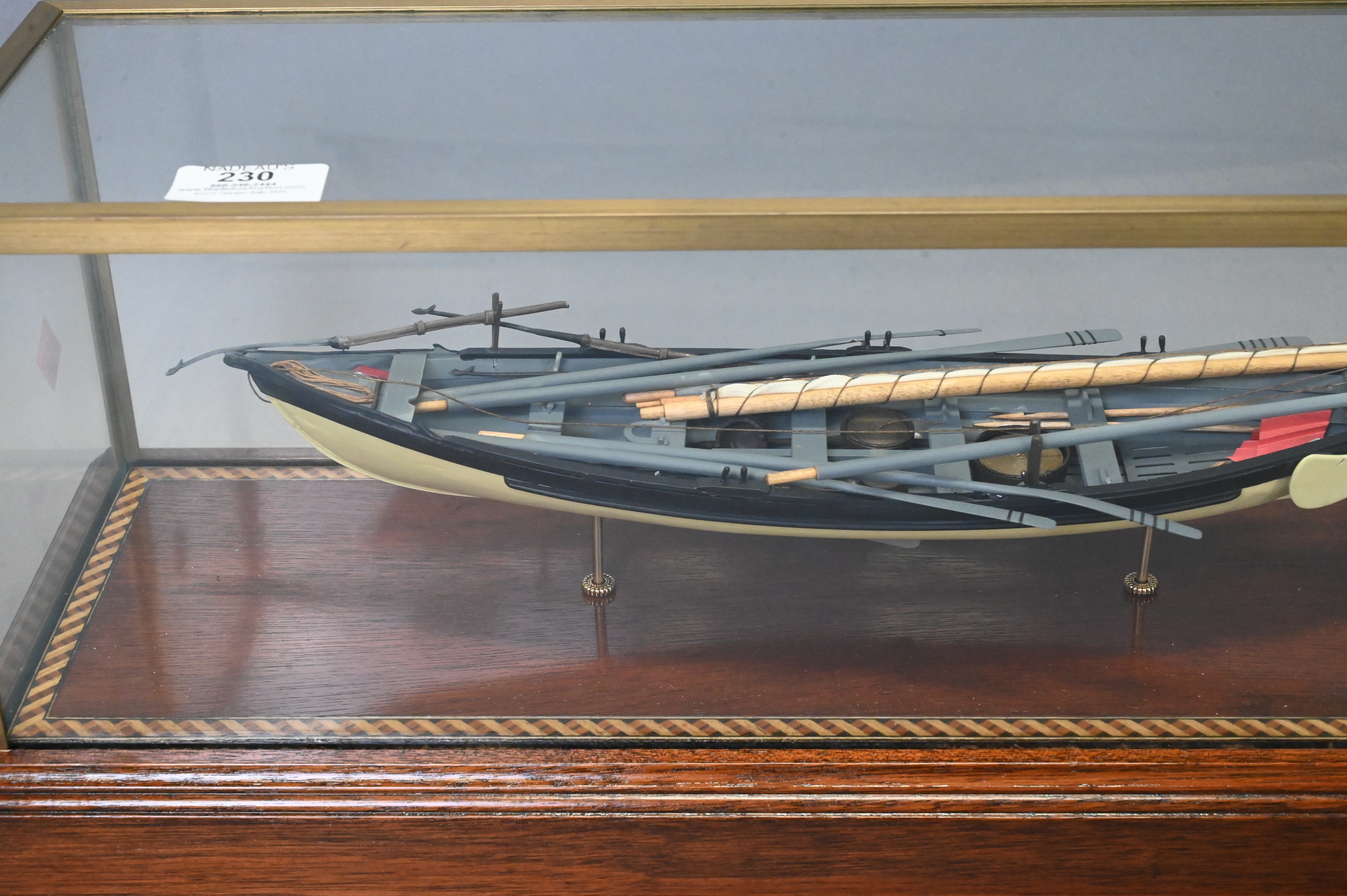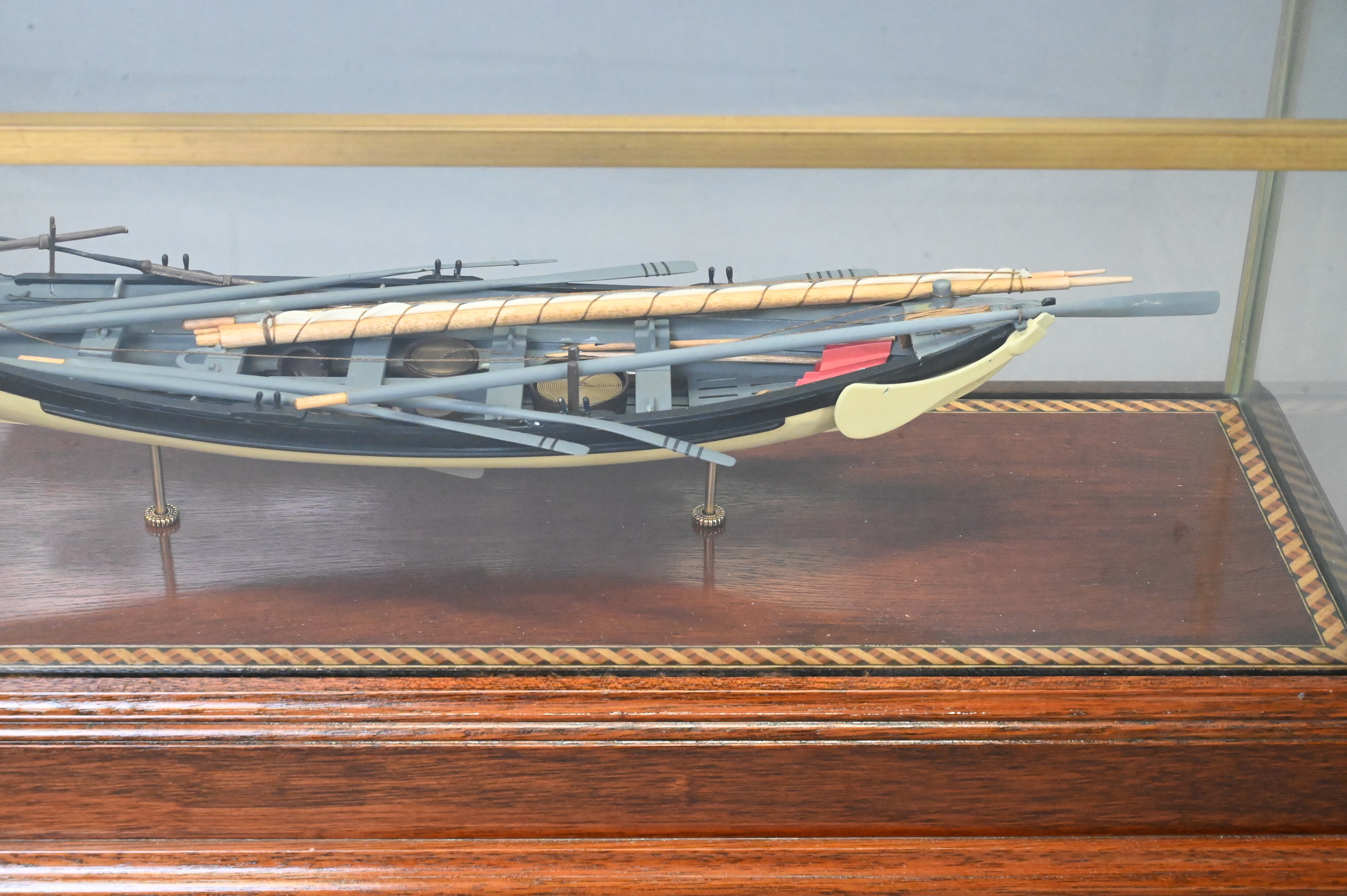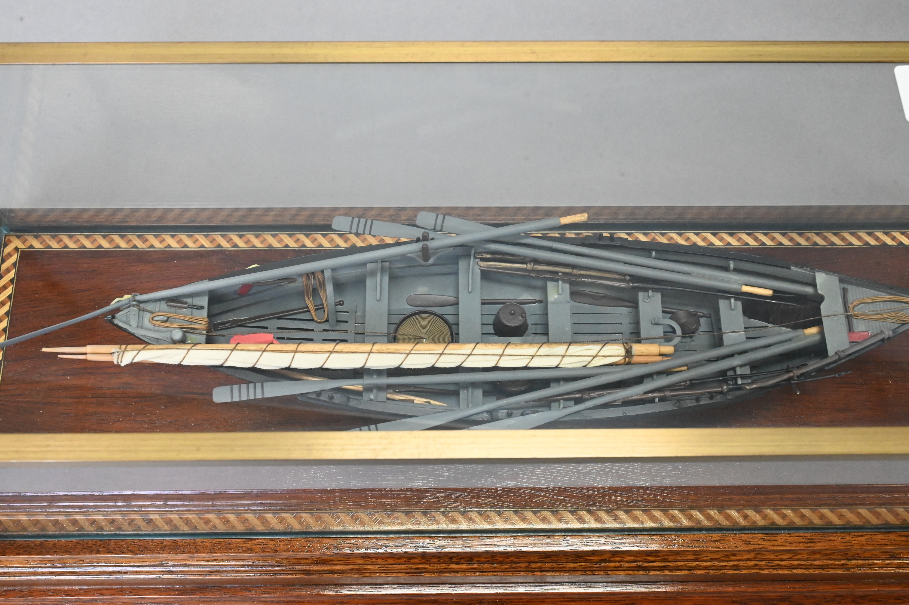 with laid down sails, harpoons and paddles in inlaid marquetry case