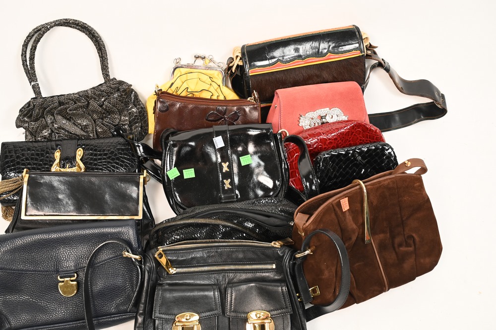 Lot 231: 14 Piece Lot of Miscellaneous Handbags, to include Vintage, Marc Jacobs, Furla, Paloma Picasso and others, having some scratches, st…