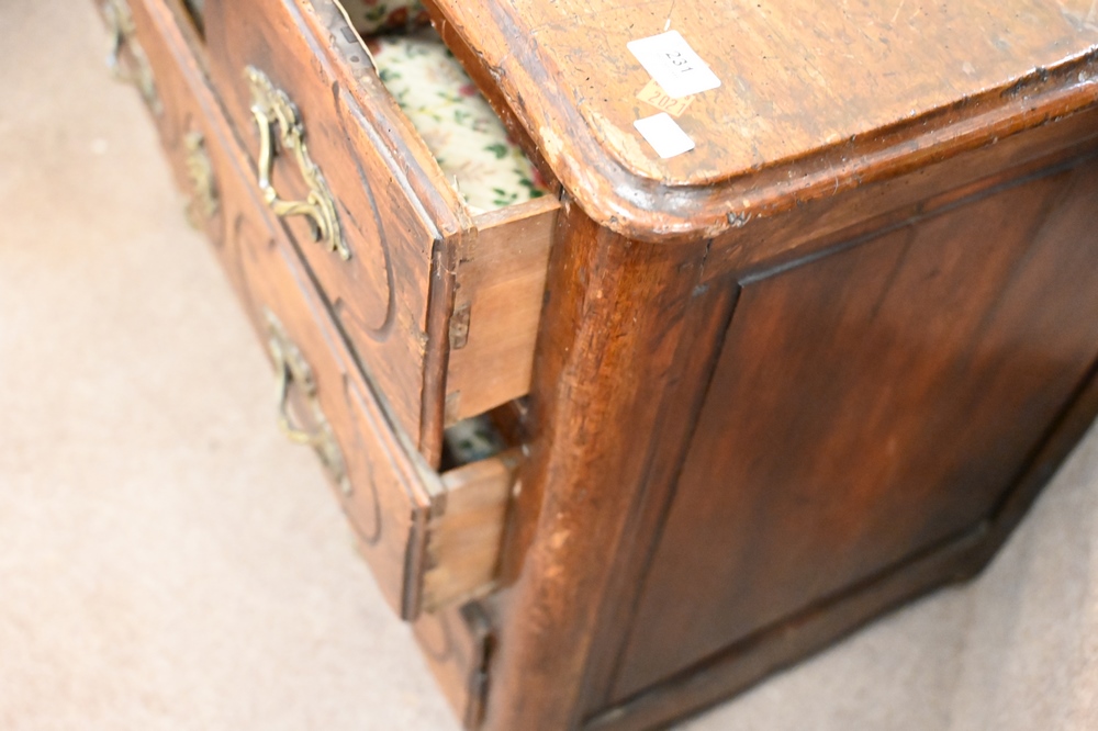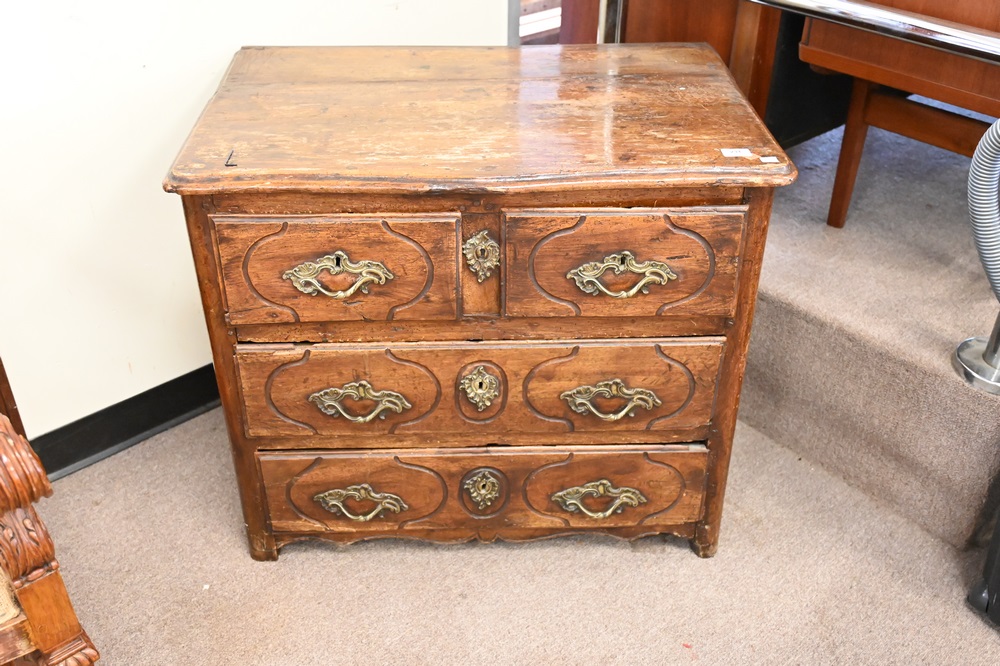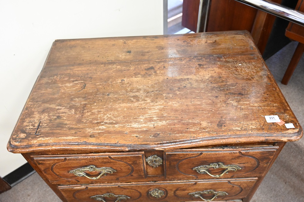 Lot 231: Continental Oak Commode, having two short drawers over two long drawers, mostly original, height 28 inches, top 22″ x 33″.