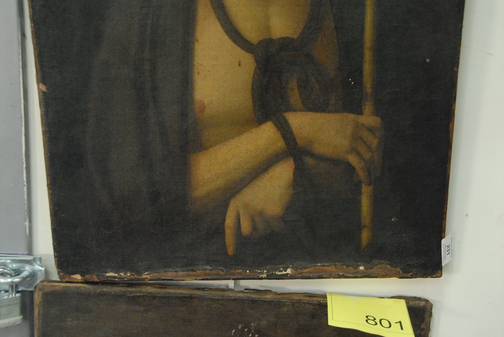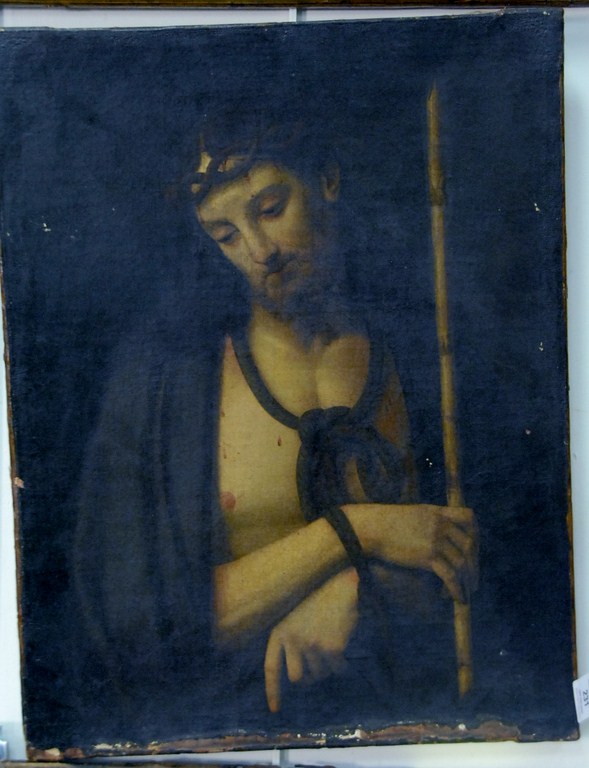 Lot 231: Florentine School 17th Century CHRIST, MAN OF SORROWS oil on canvas old relining 25 1/4 x 19 1/2