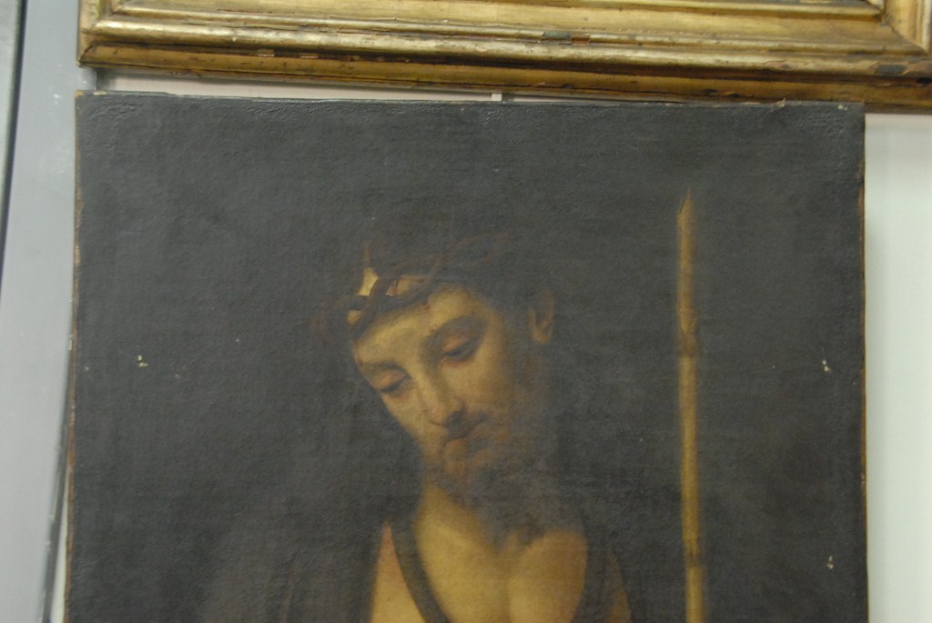 Florentine School 17th Century CHRIST, MAN OF SORROWS oil on canvas old relining 25 1/4 x 19 1/2