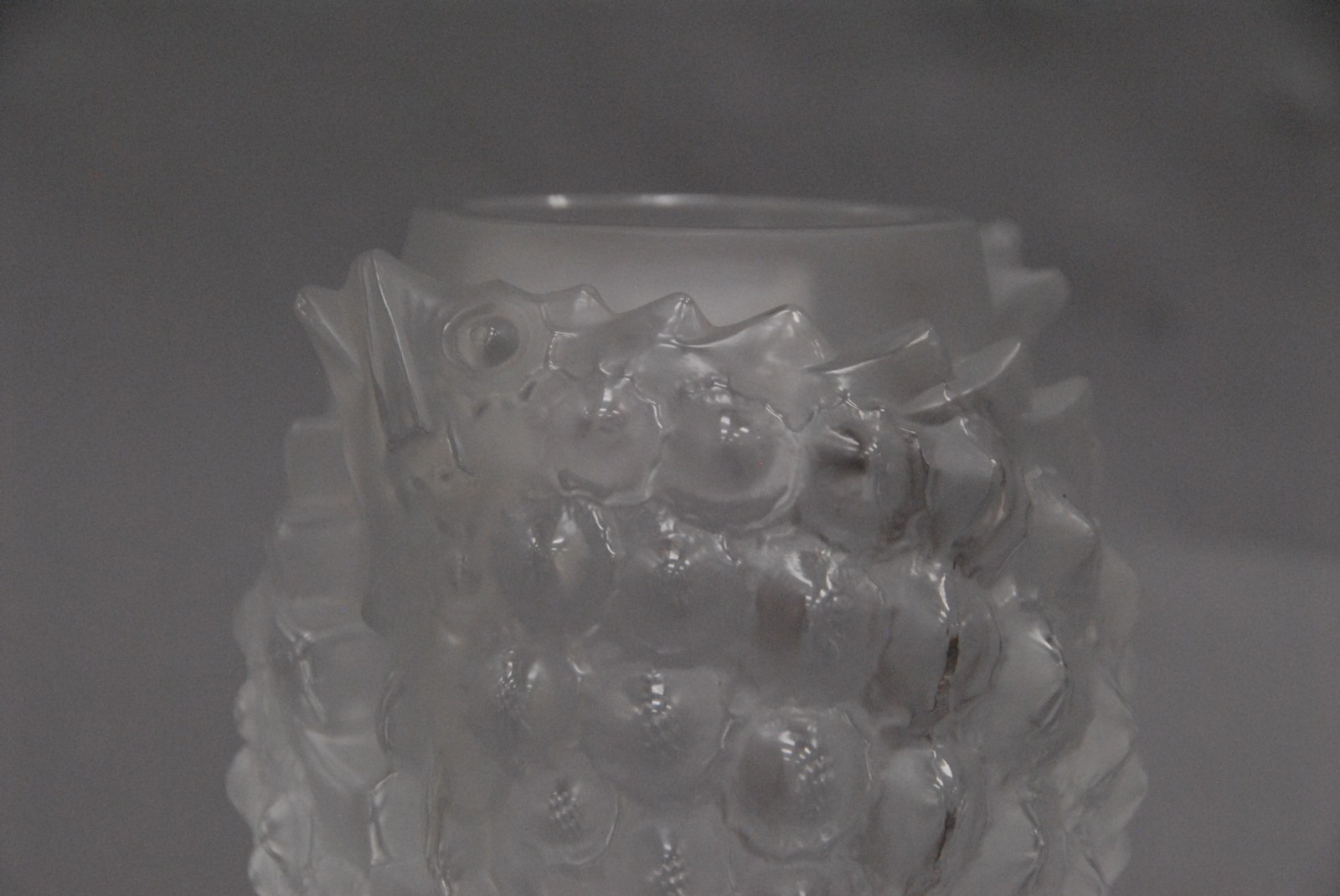 Lalique frosted vase with two fish signed Lalique in block letters.