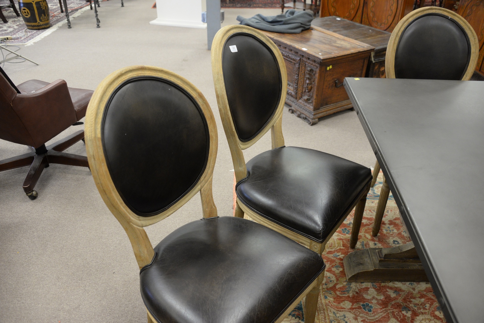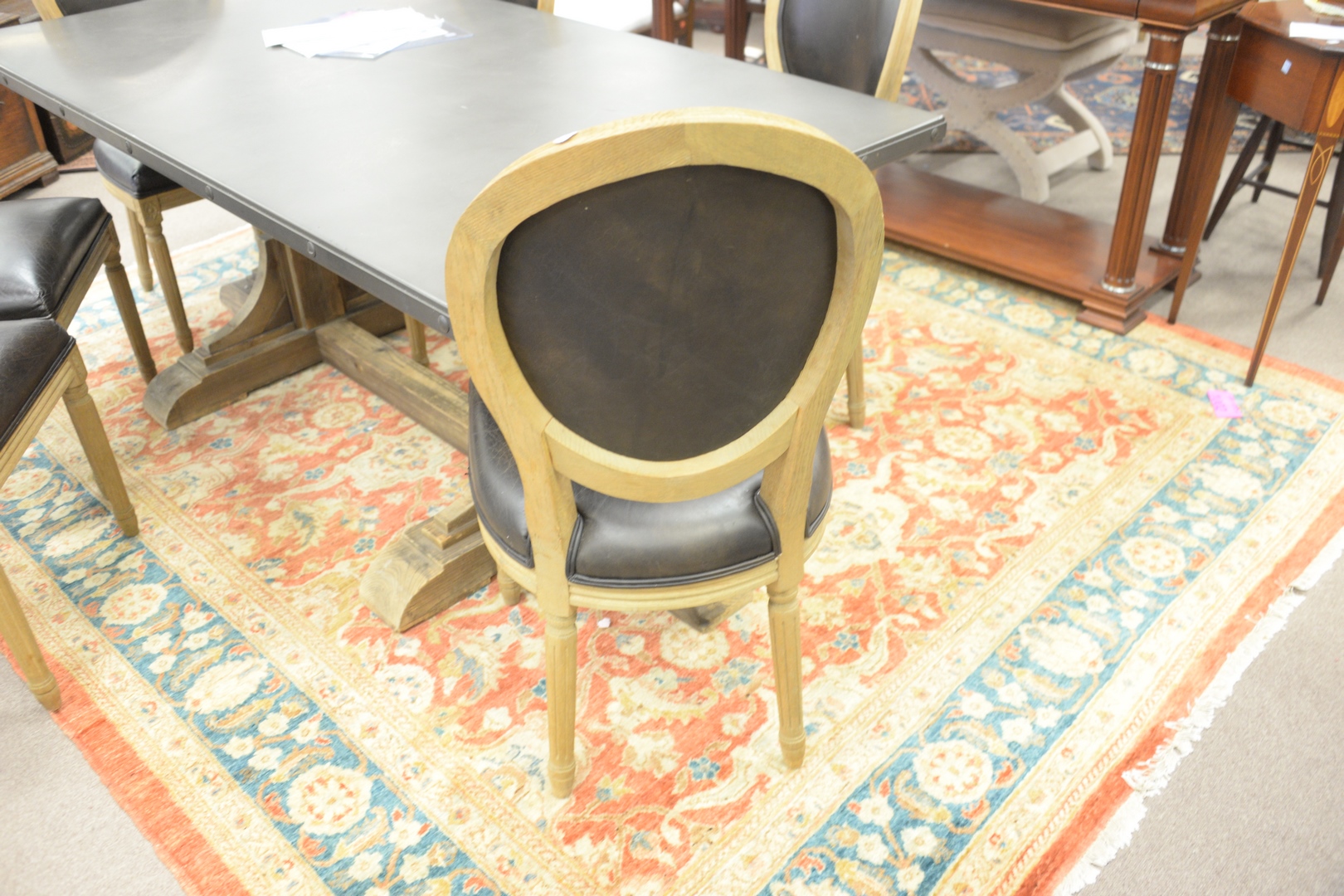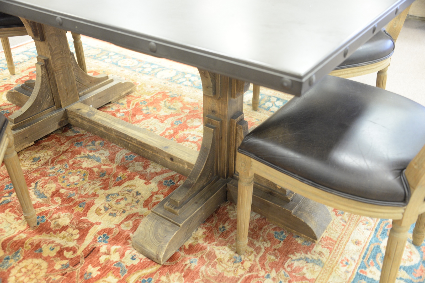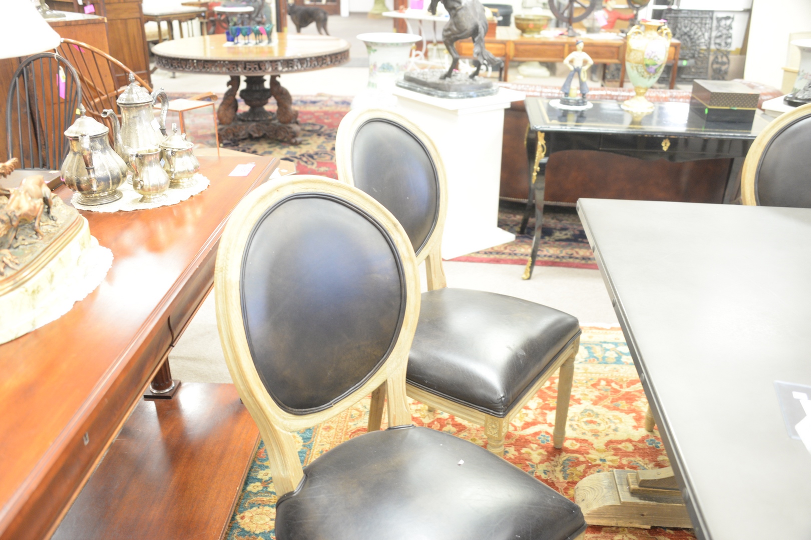 Lot 231: Restoration Hardware Dining Set, to include a set of Six Louis XVI Style Chairs upholstered along with with a dining table height …