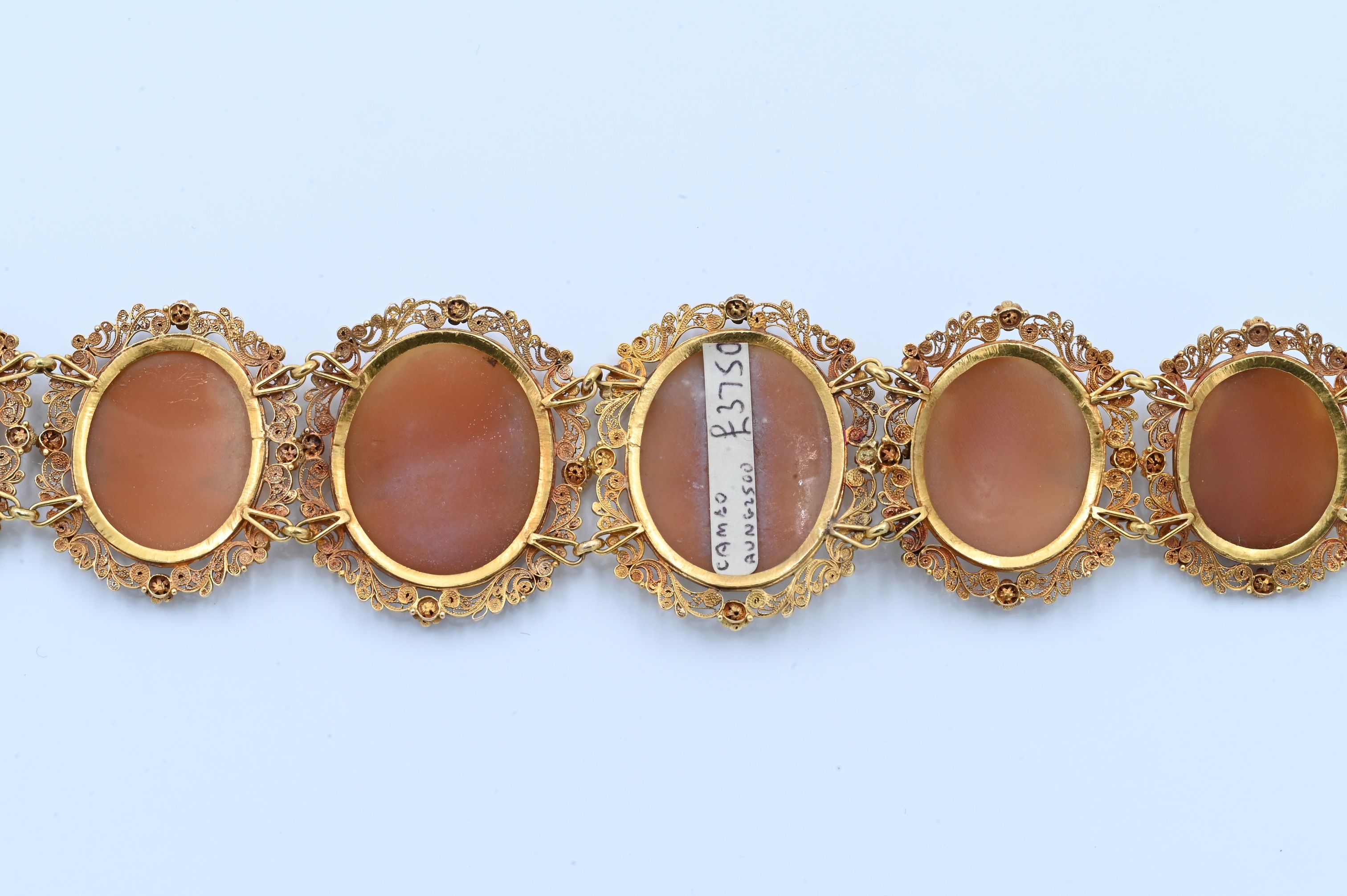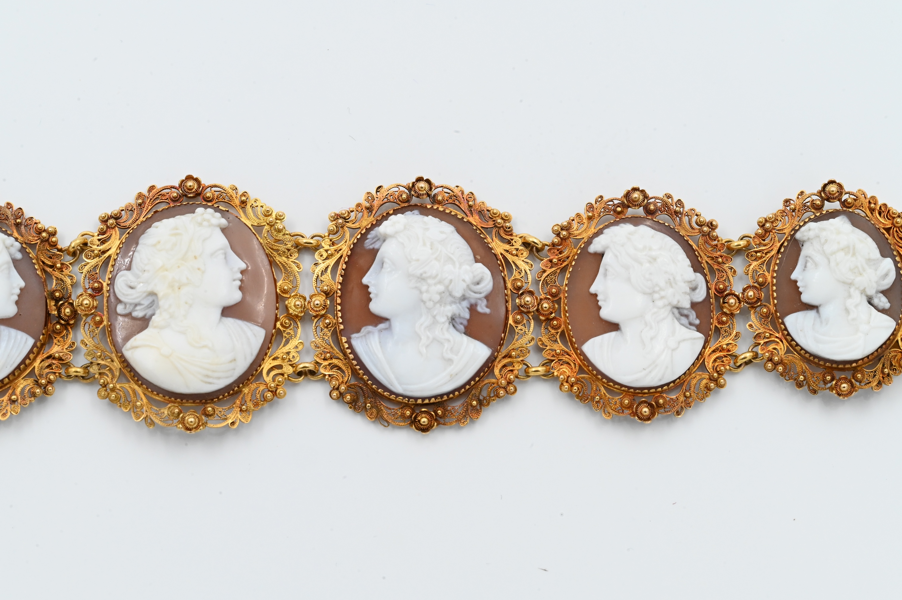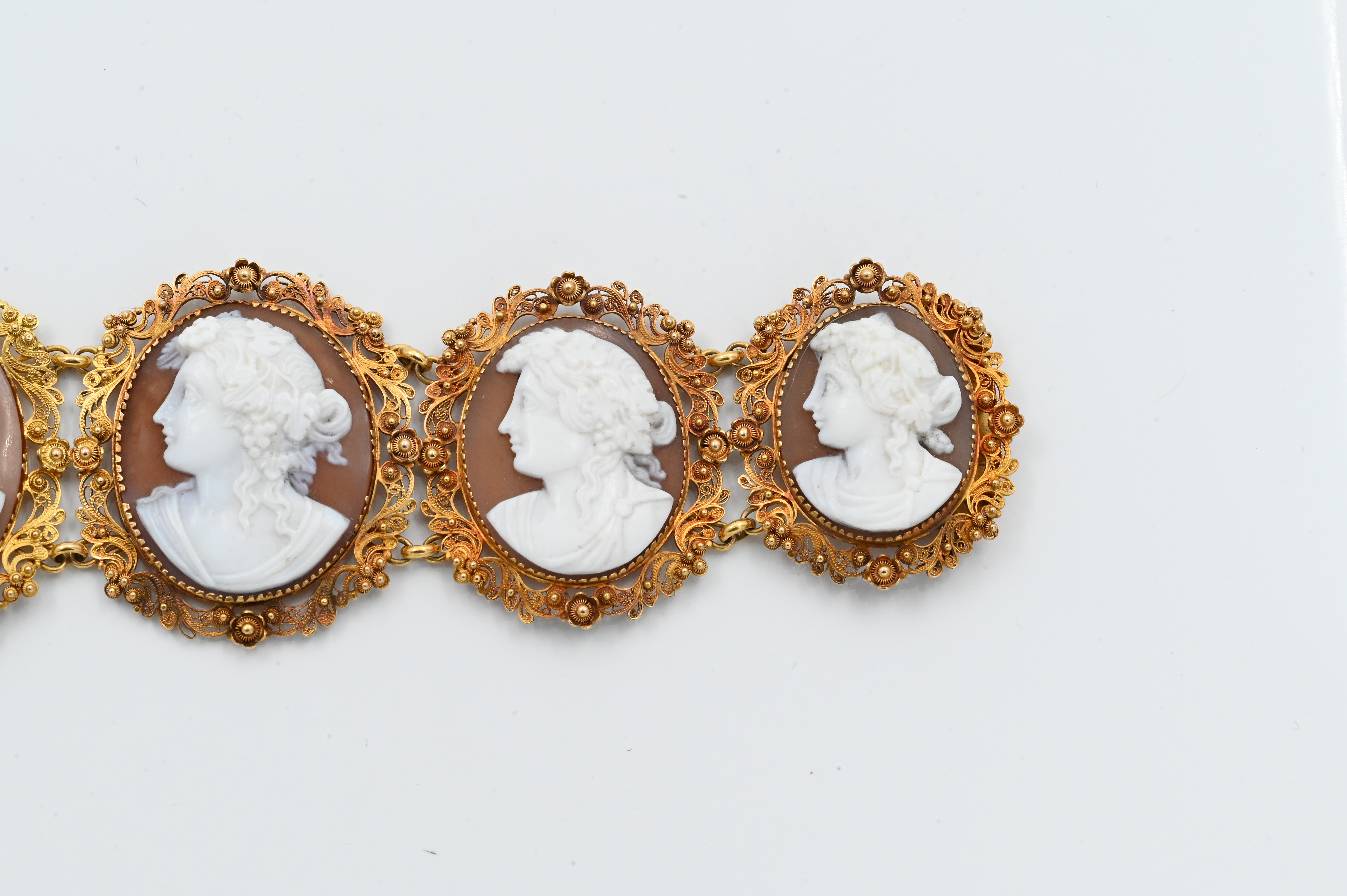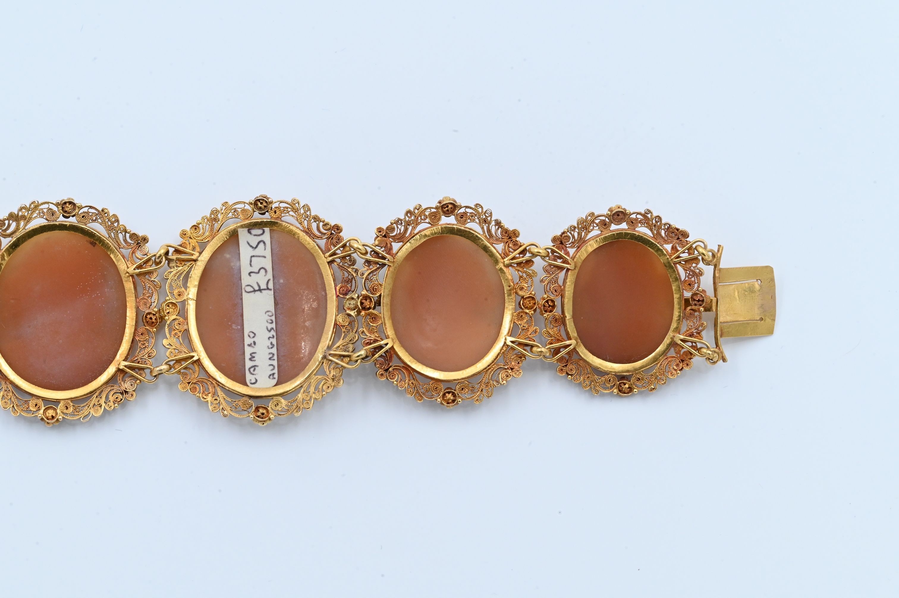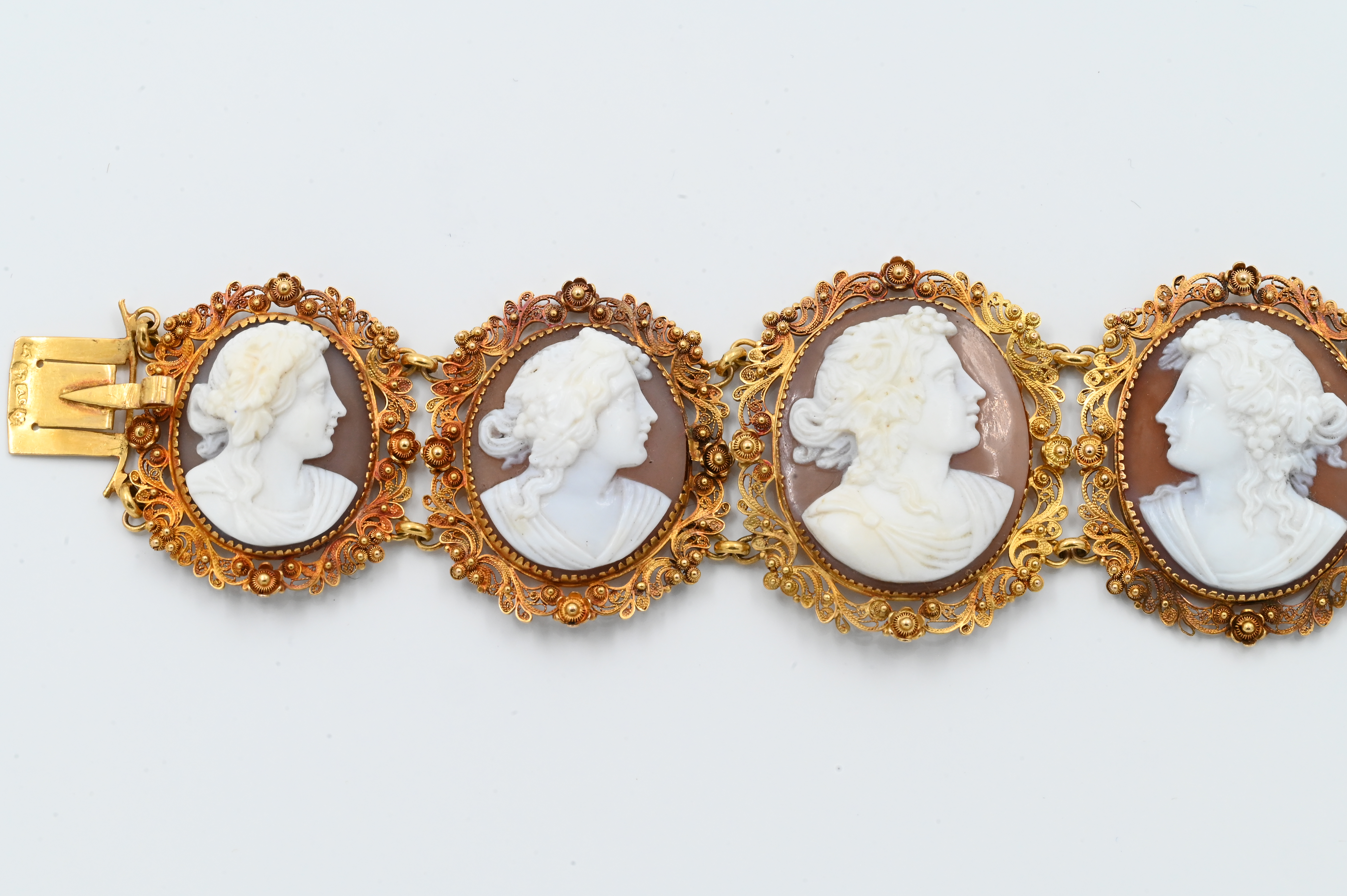 largest cameo 1 3/8 inches, bracelet length 7 inches, total weight 34.4 grams
