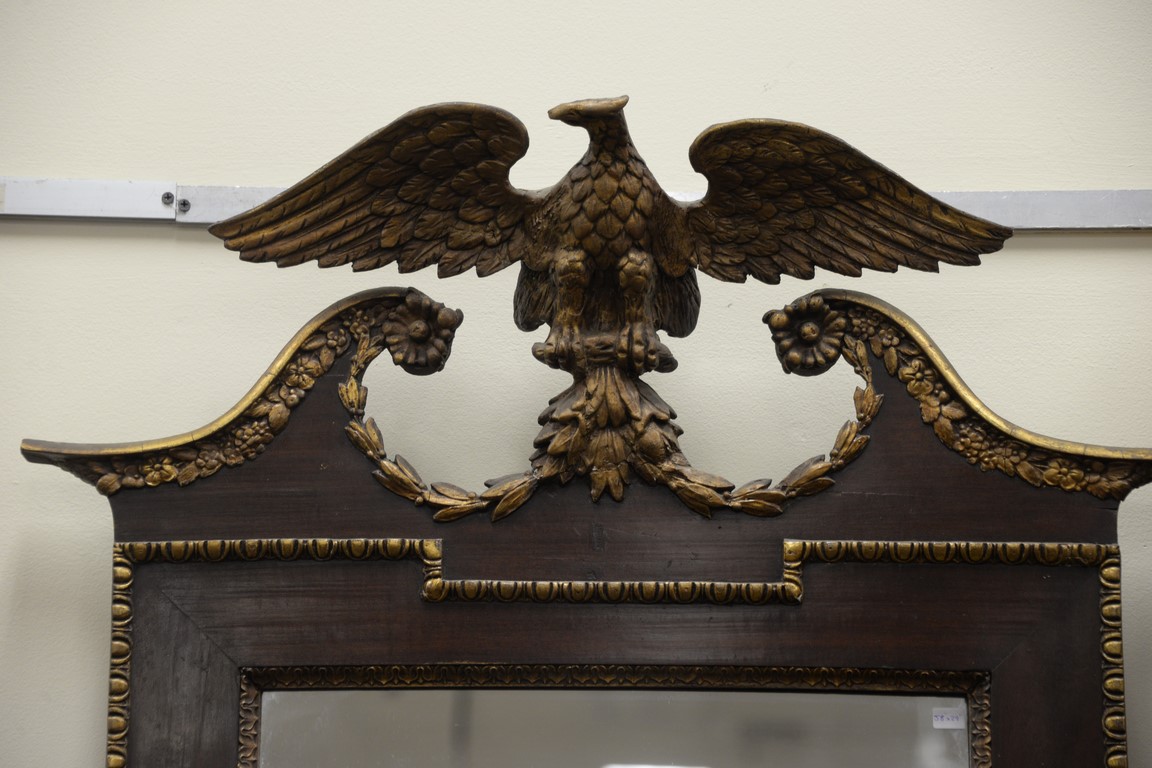 Mahogany Chippendale style mirror with eagle top, 20th century. ht. 60in.