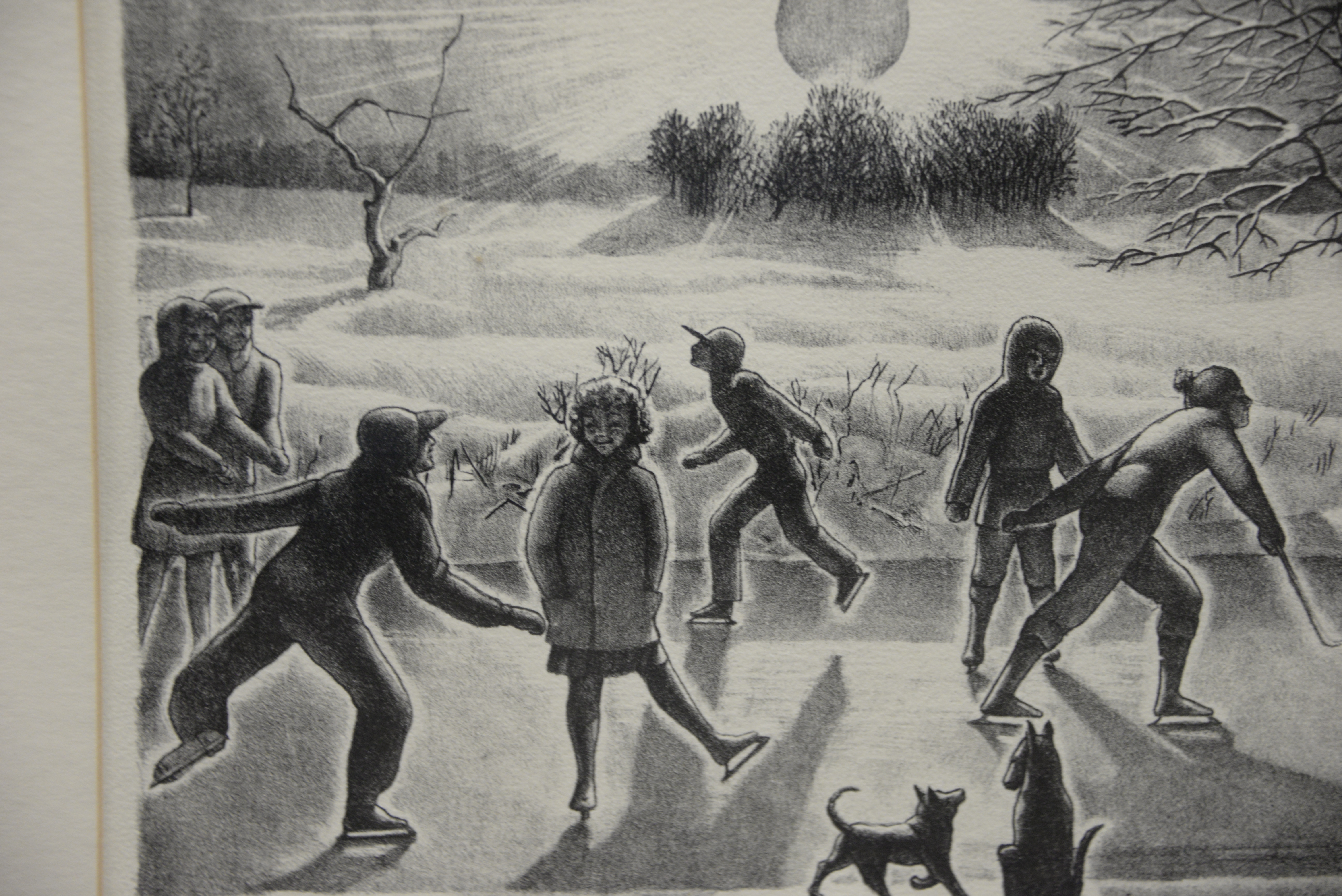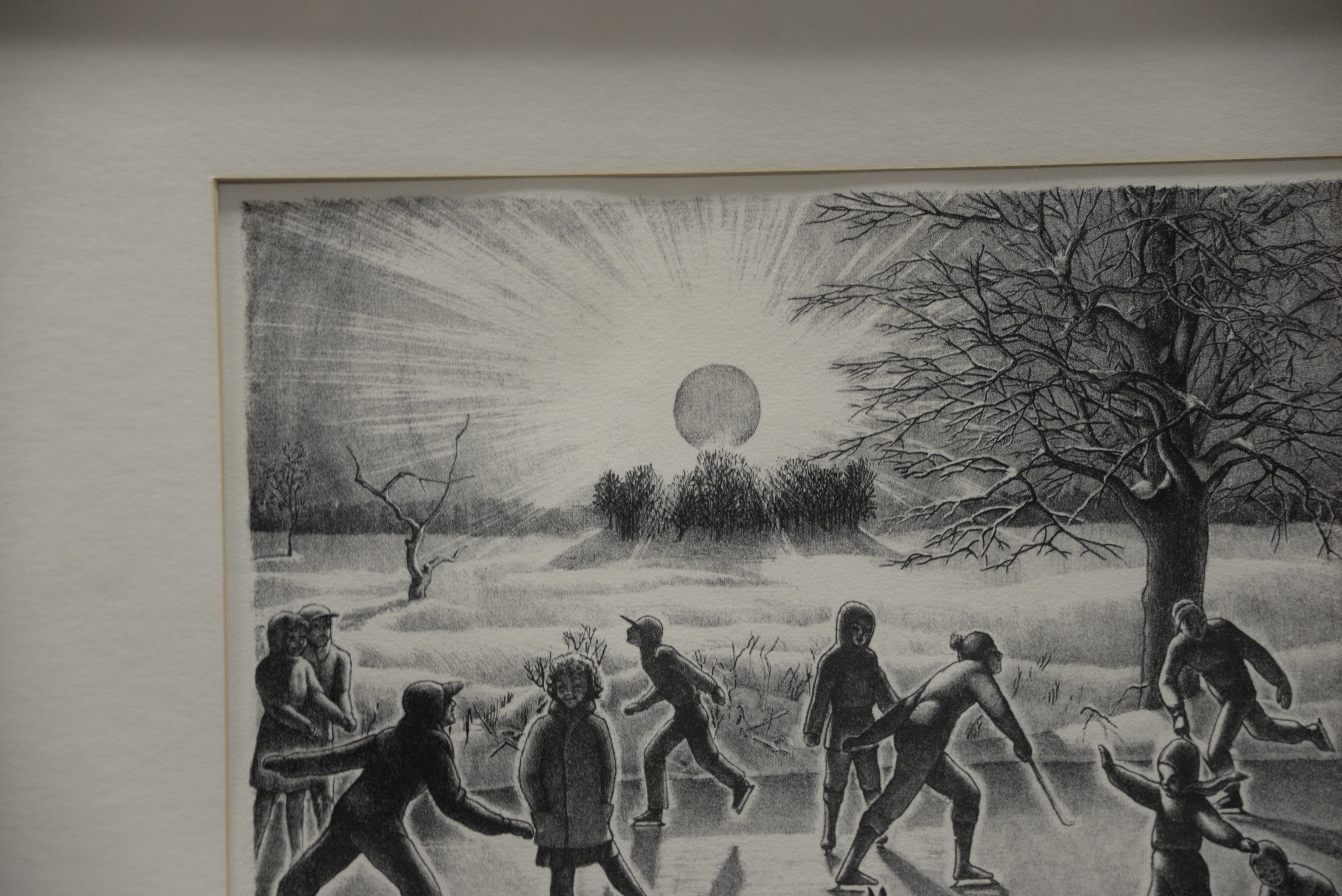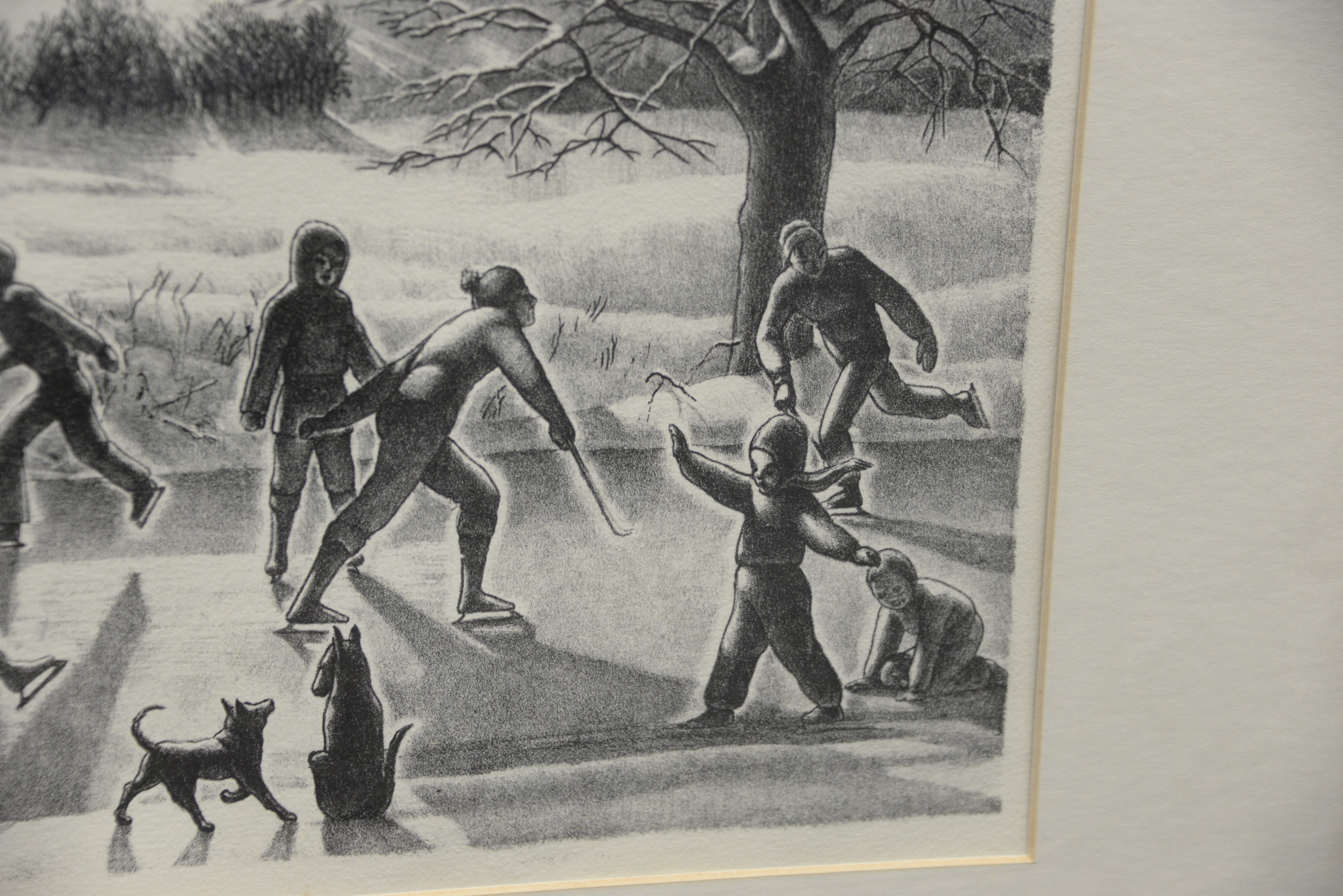 Lot 231A: Two prints by KYRA MARKHAM 1891-1967 Skaters on Hope’s Pond titled on reverse 10 x 12 3/4 and Winter Twilight signed lower right Kyra Markham ’35 titled and numbered lower left Winter Tw