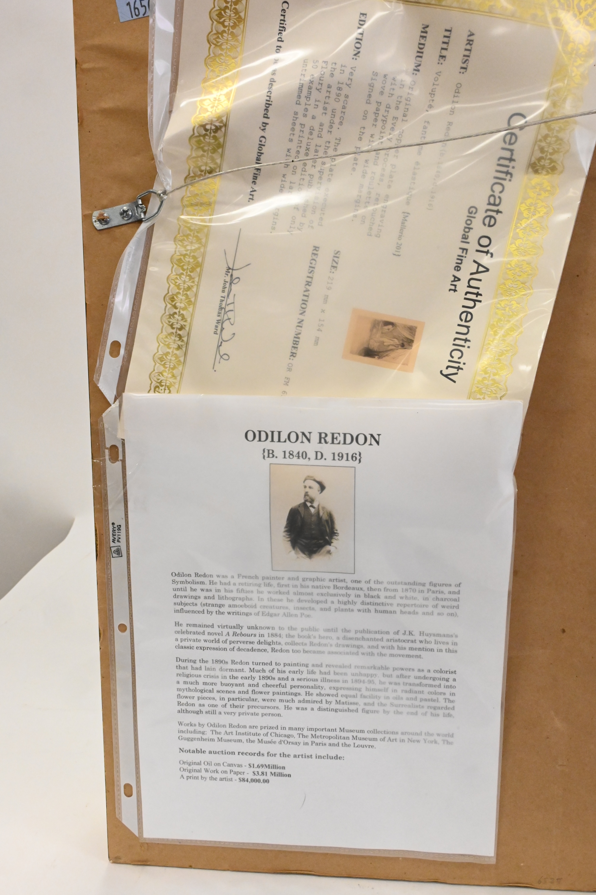 artist bio on verso along with certificate of authenticity by Global Fine Art