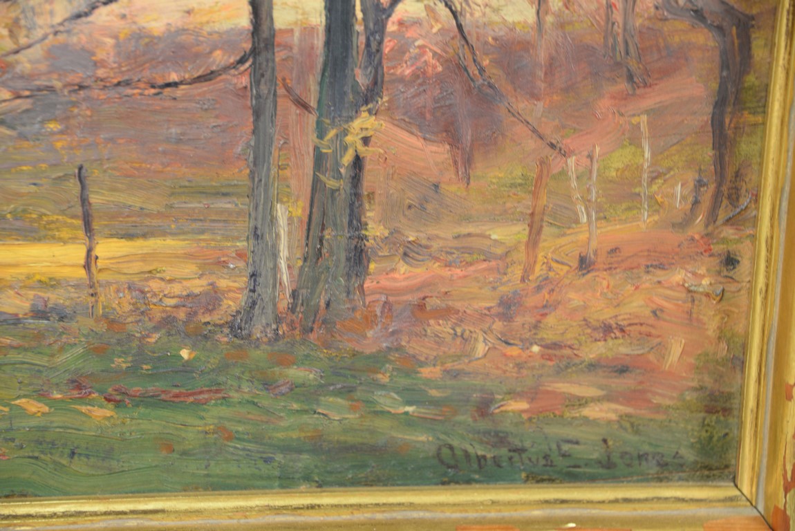 ALBERTUS EUGENE JONES 1882-1957 Fall Landscape with Fence oil on panel laid on panel signed lower right Albertus E. Jones 14 x 20