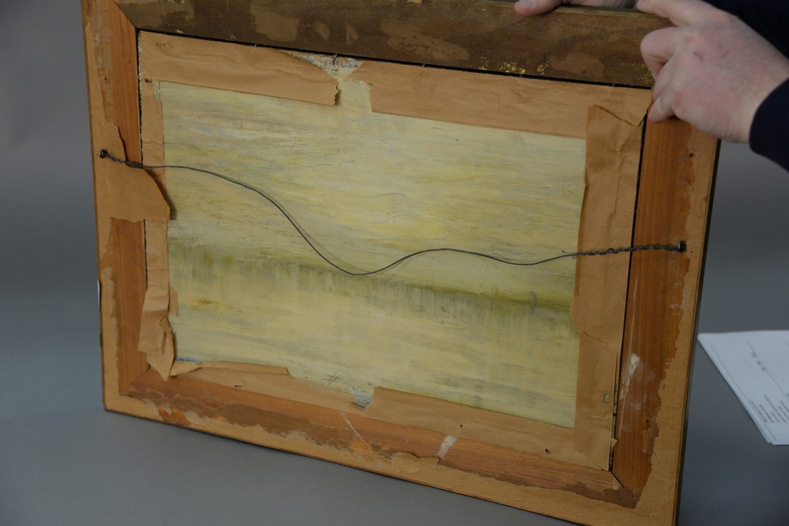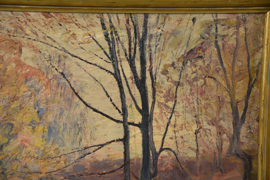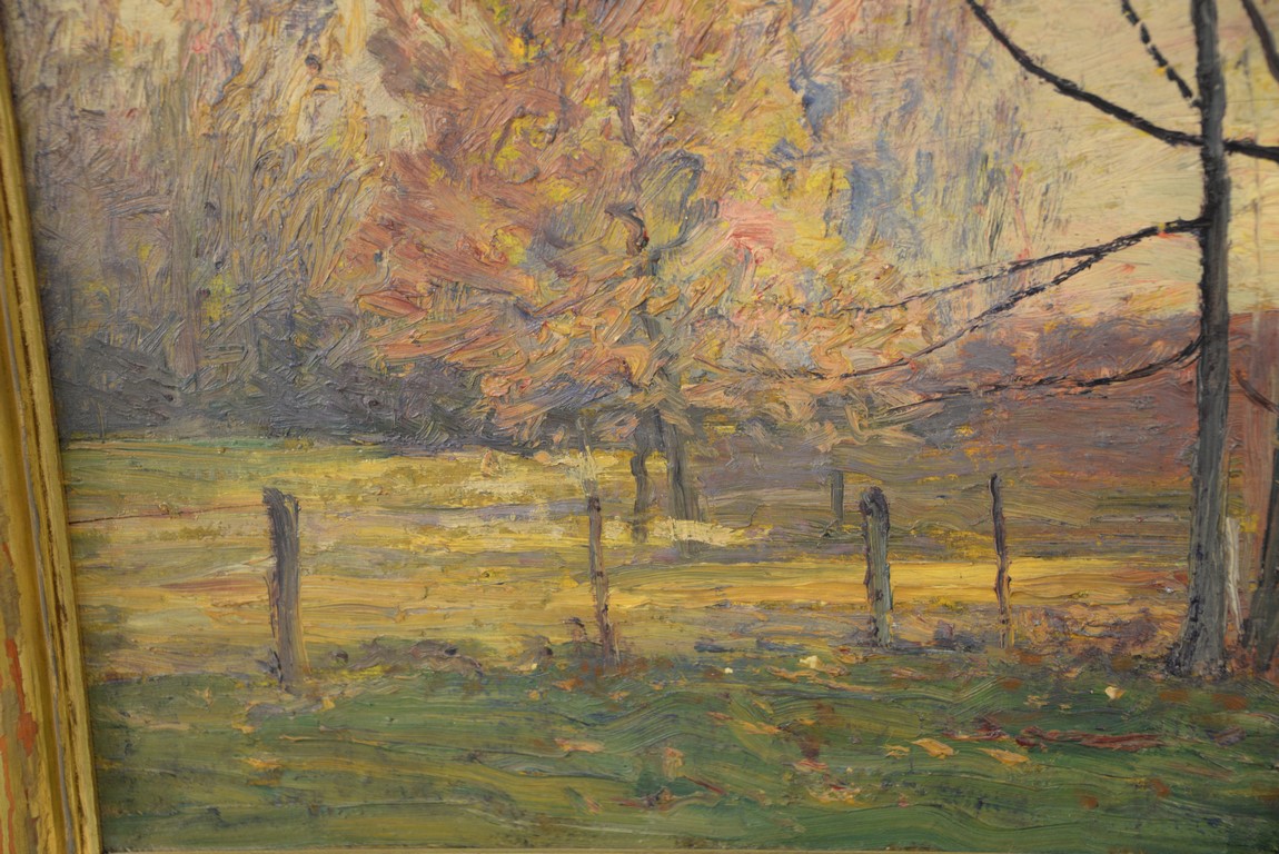 Lot 232: ALBERTUS EUGENE JONES 1882-1957 Fall Landscape with Fence oil on panel laid on panel signed lower right Albertus E. Jones 14 x 20