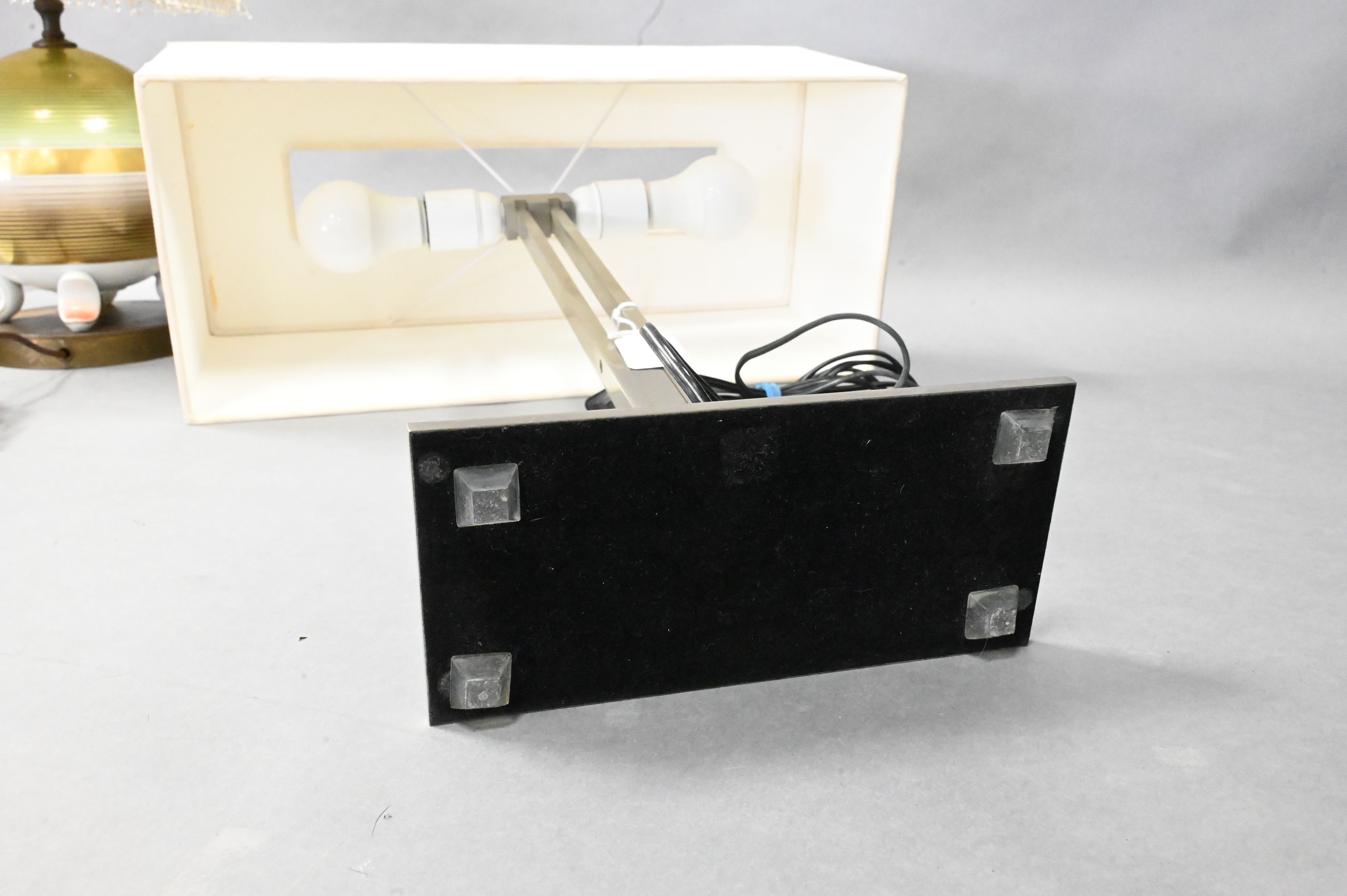 in chrome, having center stem and base plate, with paper rectangular lampshade, retails for over ($2000)