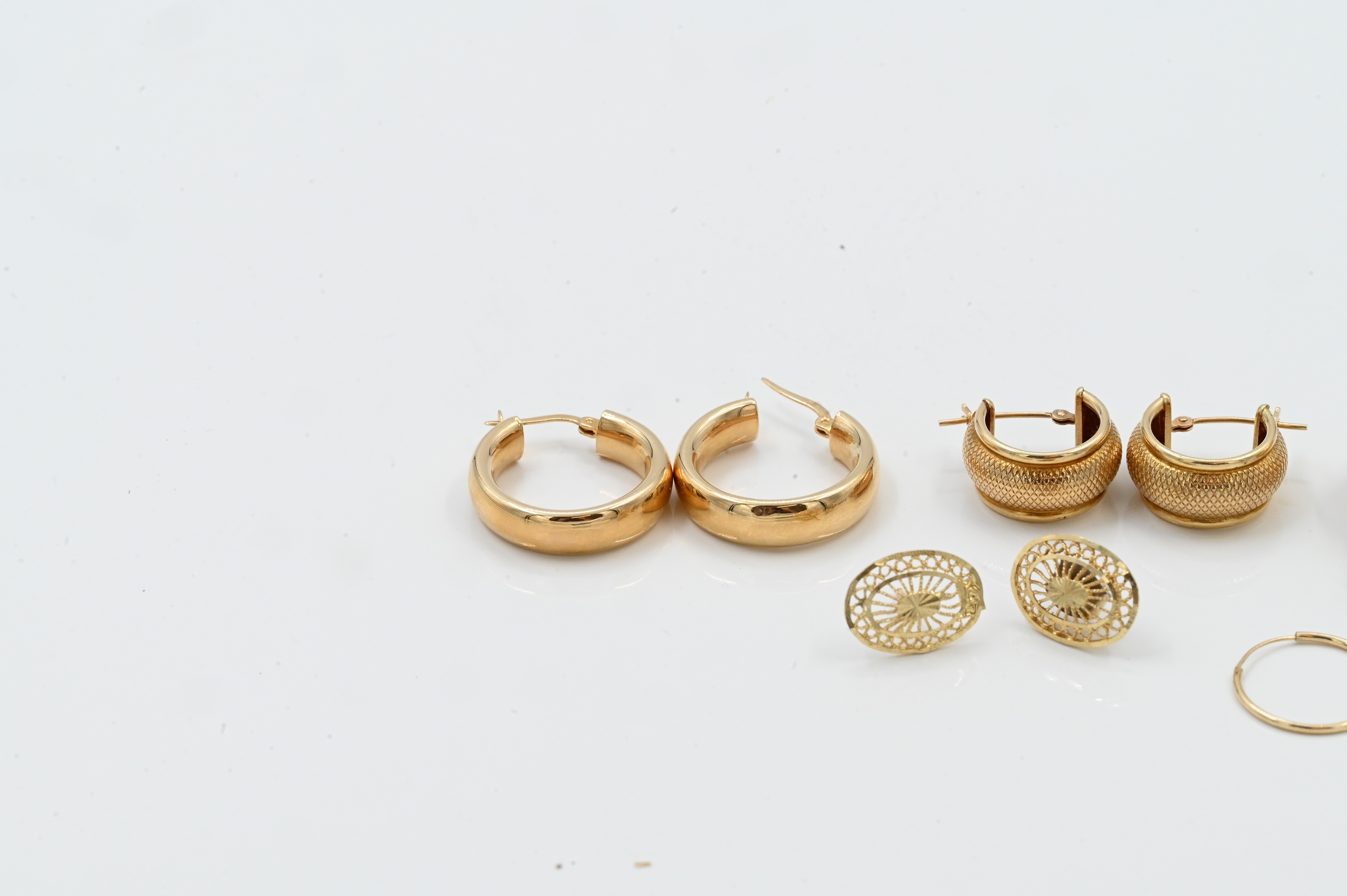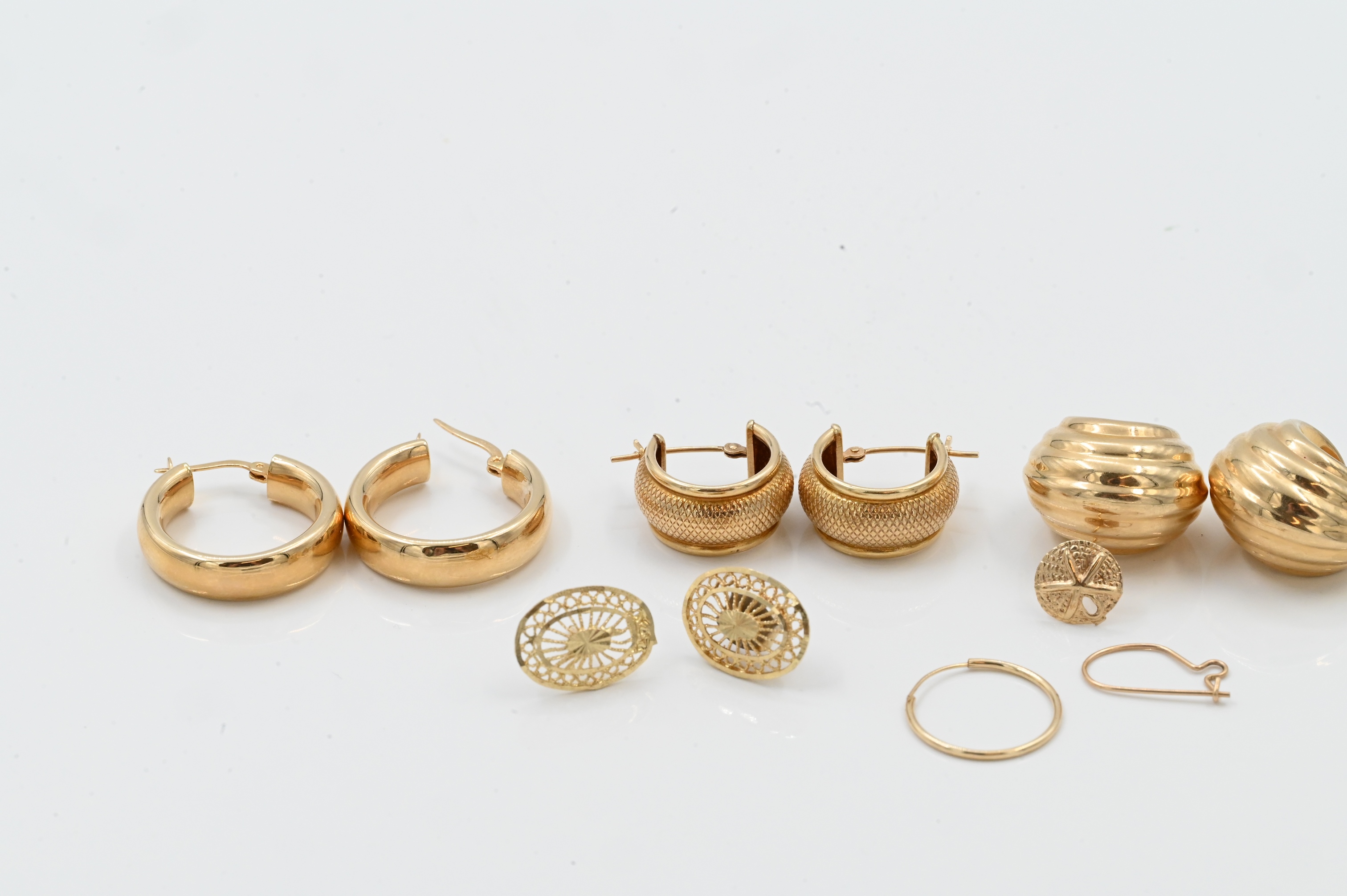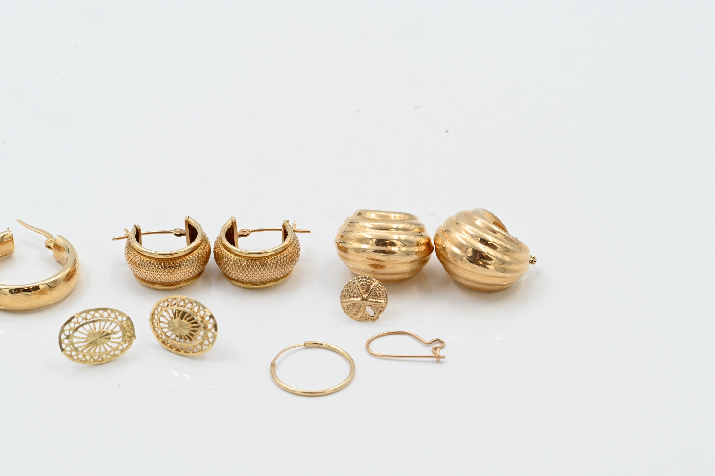 Lot 232: Four Pairs of 14K Gold Earrings Together with Three Singles